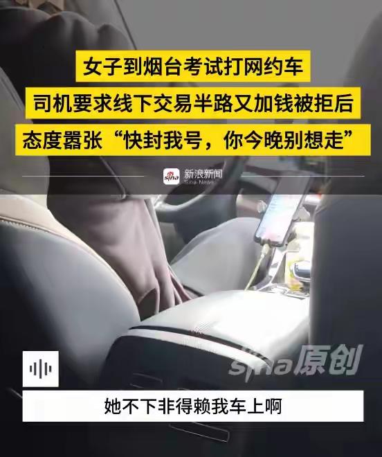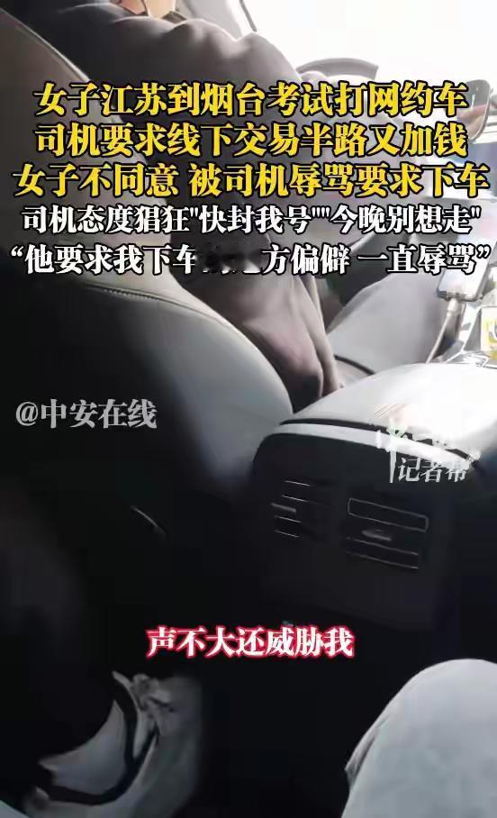 “这也太猖狂了!”山东烟台,一女大学生考完试打顺风车去火车站,司机先忽悠她取消订单线下交易,转头又要把40元拼车费涨成50。女生不肯,司机当场暴走:“今晚别想走!”骂骂咧咧要把人扔荒郊,网友看完视频全炸了。 据女生说,她上车后司机就磨叽“平台抽成高,咱私下转”,她心软答应了。车刚开十分钟,司机回头逼她多掏十块,另两个乘客都认了,她偏不,司机立马停车撵人:不爱坐就滚!荒郊野岭,女生怕也赶火车,硬坐着不动,司机拍桌吼:“快封我号!今晚别走!”脏话飙得满车都是。 女生死犟回嘴“我就要走”,司机真掏出手机要替她报警,双方僵持。最后司机怕误事,还是把人送到站,收了原价40。平台只补30元优惠券,女生没要。市交通局已介入,司机账号被封。网友笑:加价10块丢饭碗,何苦呢!