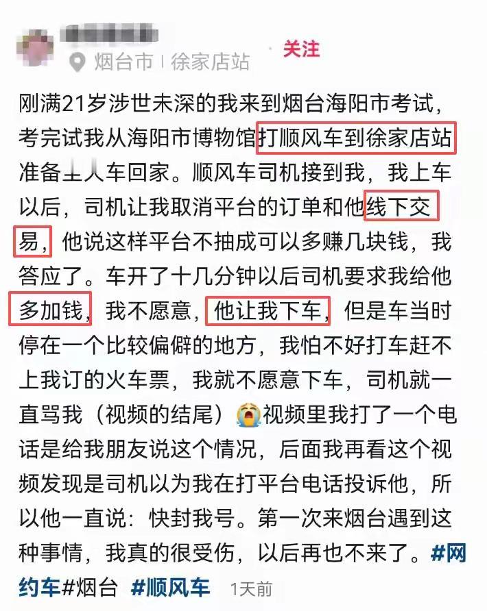 “这也太猖狂了!”山东烟台,一女大学生考完试打顺风车去火车站,司机先忽悠她取消订