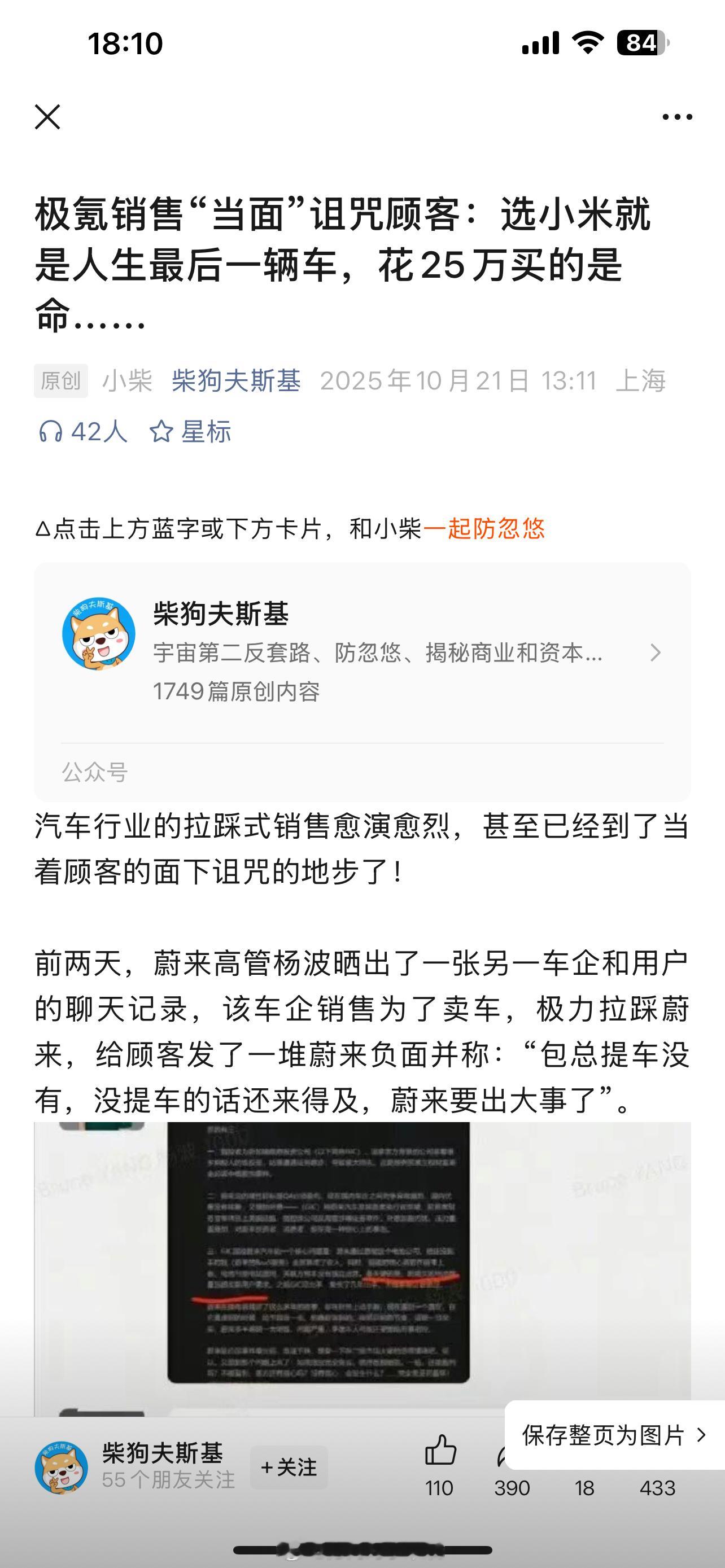 极氪销售不仅仅是拉踩小米,还造谣蔚来岌岌可危,这销售能不能好好卖车,不拉踩啊!