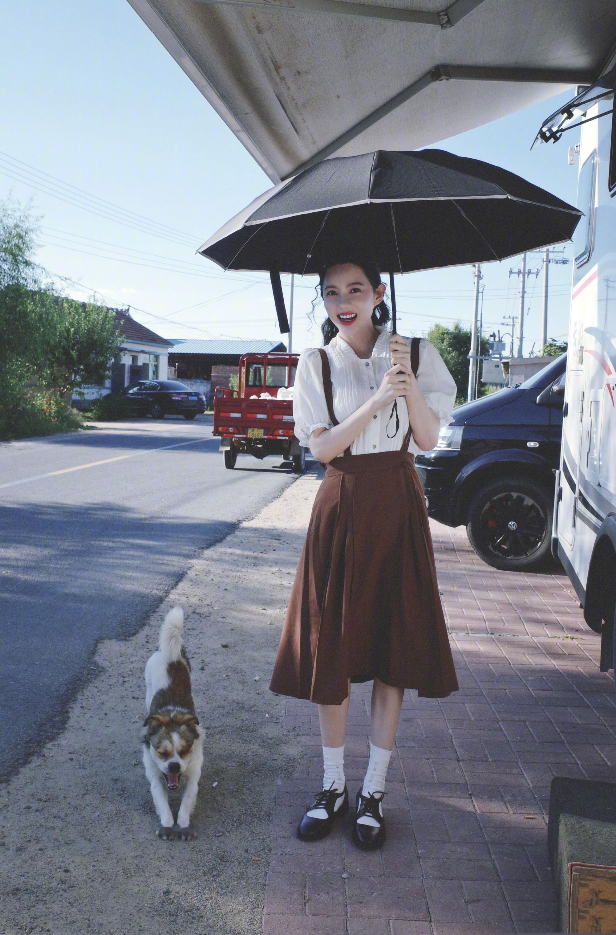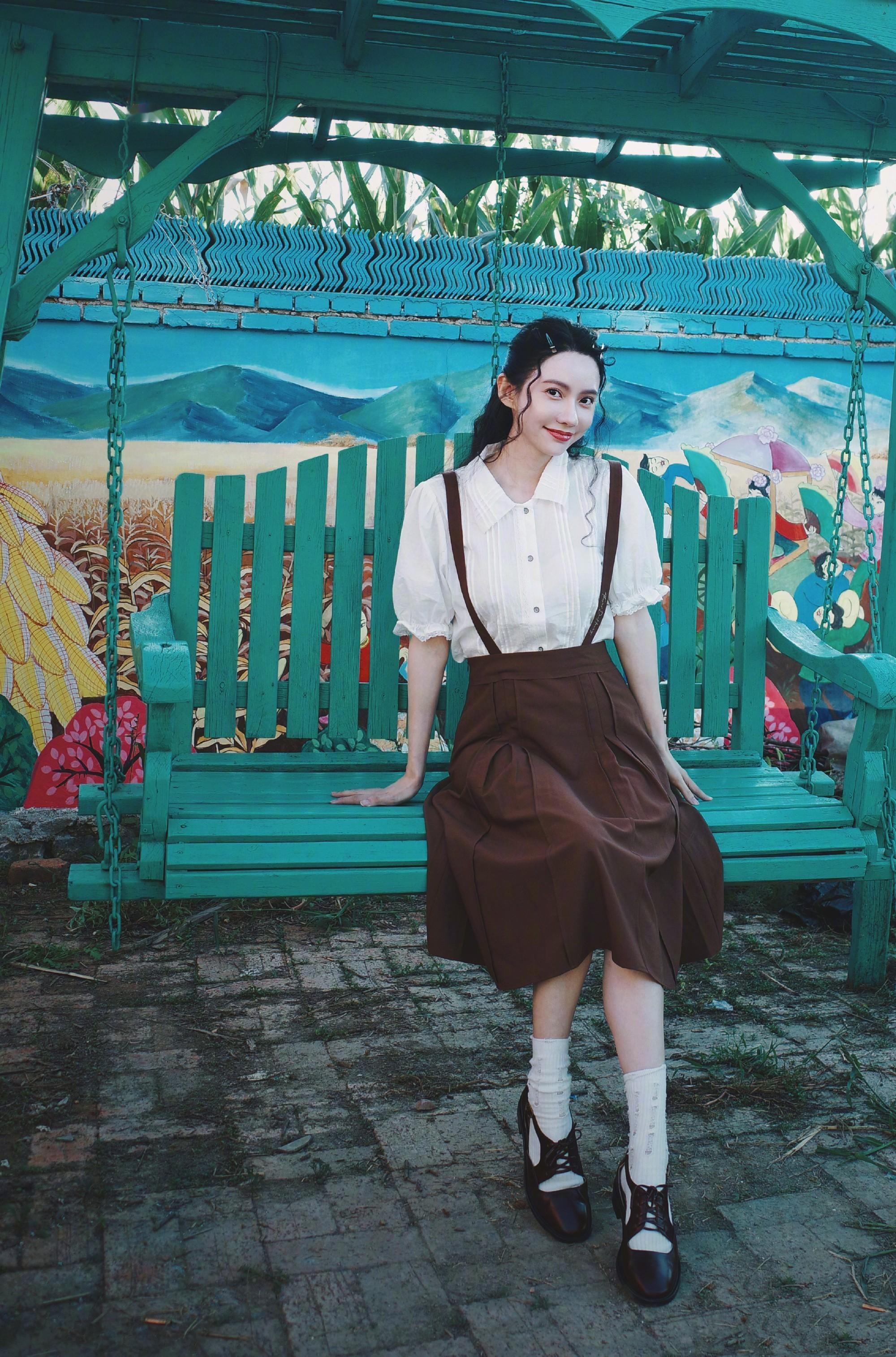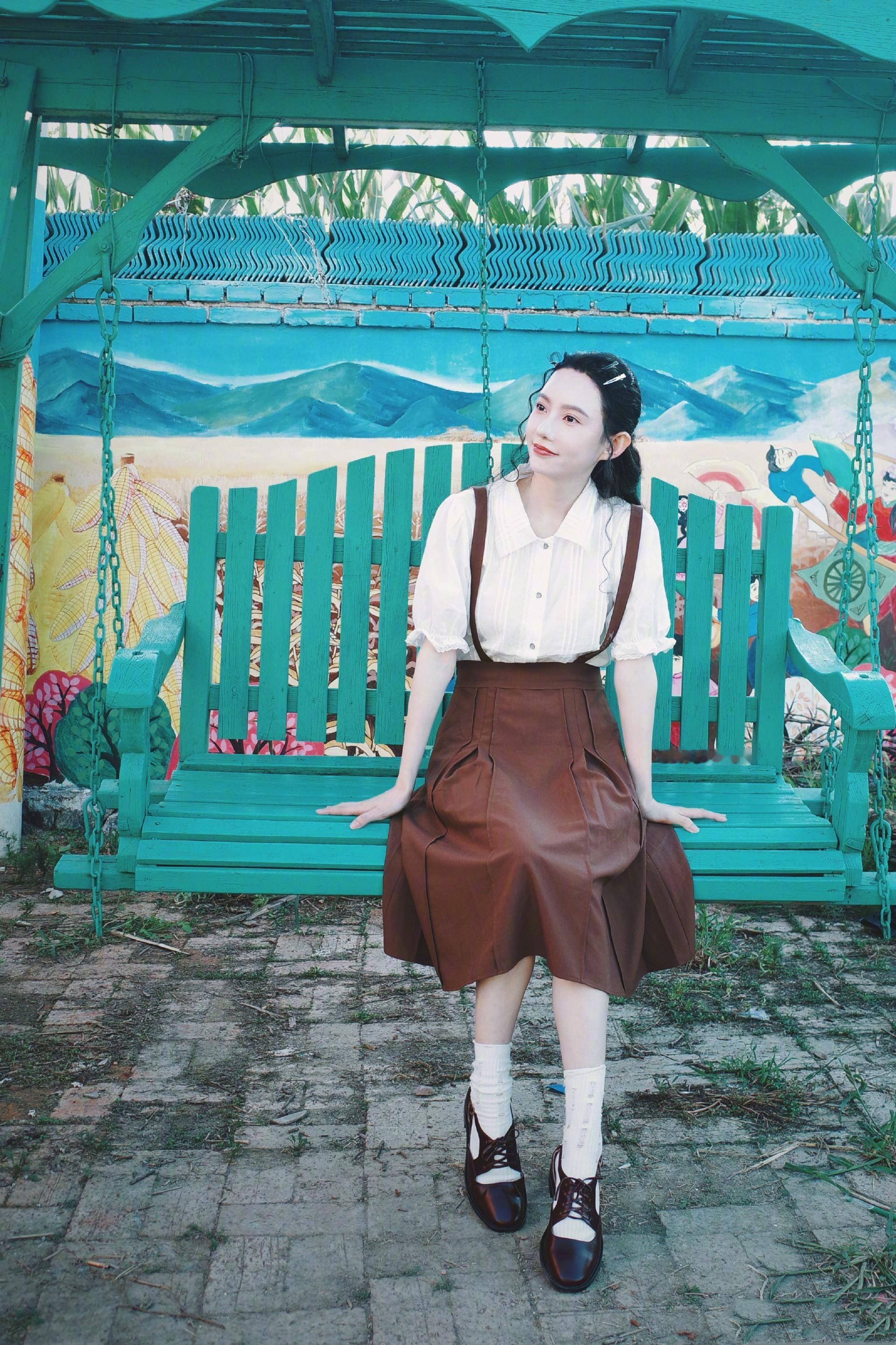 刘萌萌,学院风和文艺风搭配,很有范儿