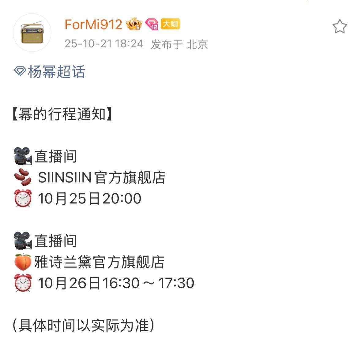 杨幂26号雅诗兰黛的直播和共创之夜的19点的直播这么近,是不是也有今年王者荣耀