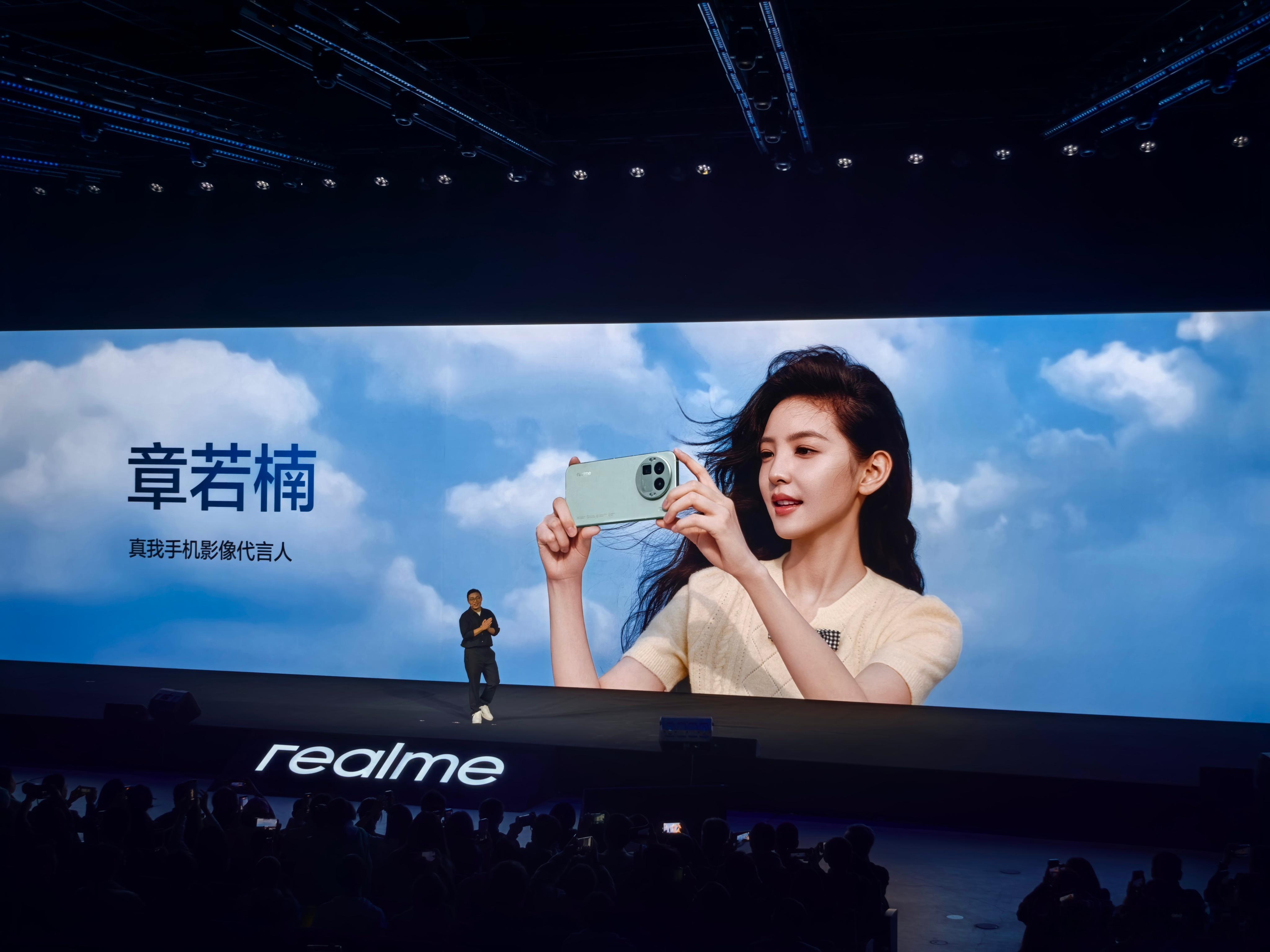 真我手机摄像代言人是章若楠,你看起子哥笑的都合不拢嘴了,她实在是太美了!真我GT