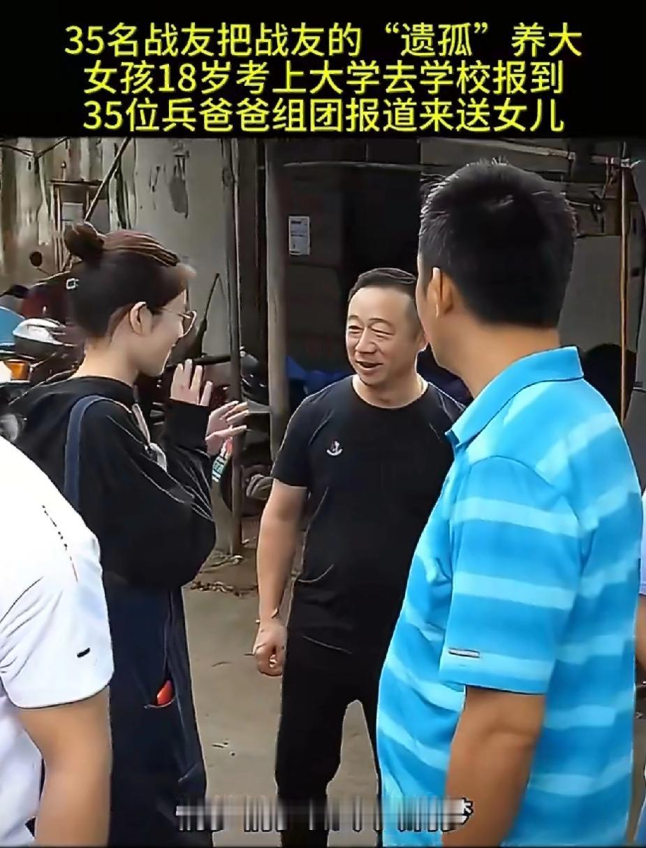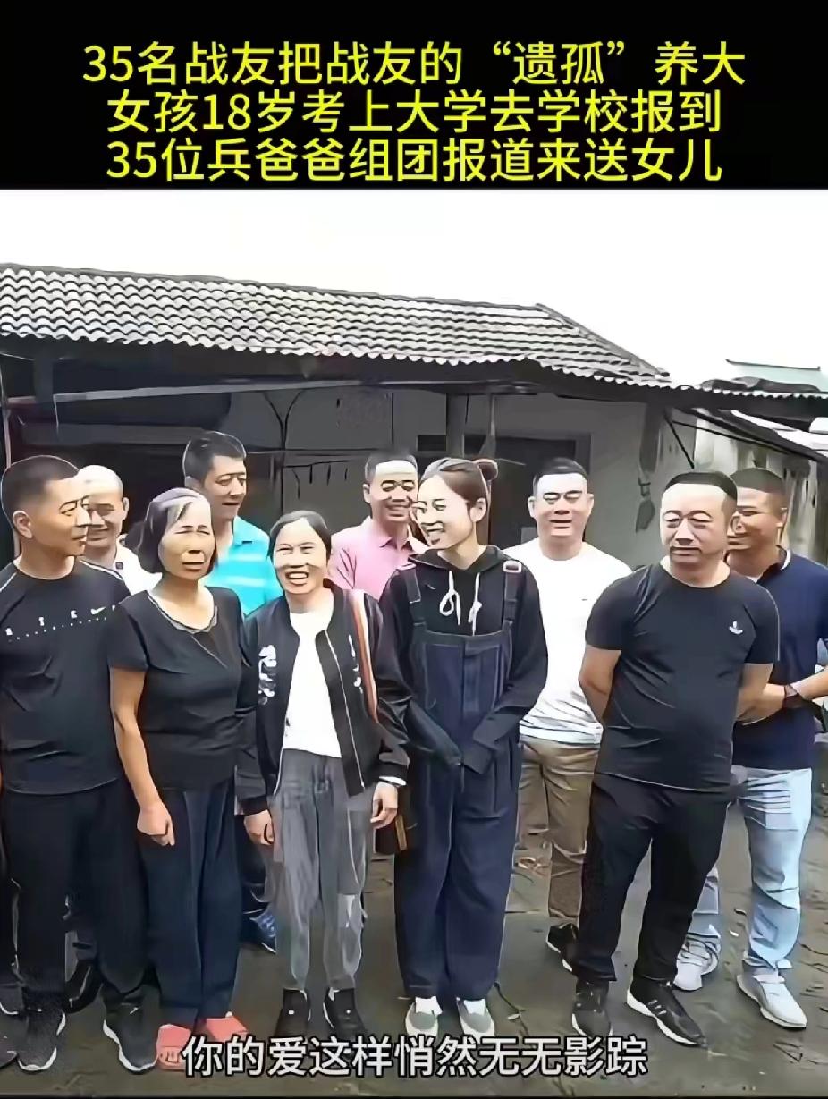 这组跨越21年的合照太好哭了!照片里的小姑娘永远站C位,被35个大叔紧紧簇拥着,而这背后的故事,藏着最动人的战友情谊。 2004年,退役军人郑君杰因车祸突然离世,留下3岁的女儿郑菘芳和破碎的家庭。谁也没想到,他当年一起扛过1998年洪水的35位战友,当场就拍了板:"这孩子,我们一起养!" 从此,35个糙汉子成了郑菘芳的"兵爸爸" 。 这些"爸爸"从不含糊:小时候上学要走3.5公里,他们轮流接送,一天4趟从不间断;中考前孩子摔断胳膊,有战友每天骑十几公里路送骨头汤;得知孩子因单亲被霸凌,立马组团去学校撑腰维权 。他们凑钱供孩子读书,逢年过节送米面粮油,连填高考志愿都全员到场出主意,把"人没了,家不能倒"的承诺守了21年。 如今郑菘芳已长成能独当一面的姑娘,可这群当年的小伙子也熬成了年近五十的中年人。翻看老照片,当年怯生生抱父亲遗像的小不点,早已在35份父爱的守护下,眼里有了坚定的光。这哪是战友啊,分明是把"一声兄弟,一世责任"刻进了骨子里。 都说锦上添花易,雪中送炭难。35位老兵用21年的坚守告诉我们,最铁的情谊从不是酒桌上的豪言,而是危难时的挺身而出。你被这份跨越岁月的守护打动了吗?来说说你见过最动人的兄弟情是什么样的~ 35个兵爸爸守护女孩21年 战友如兄弟有多戳人