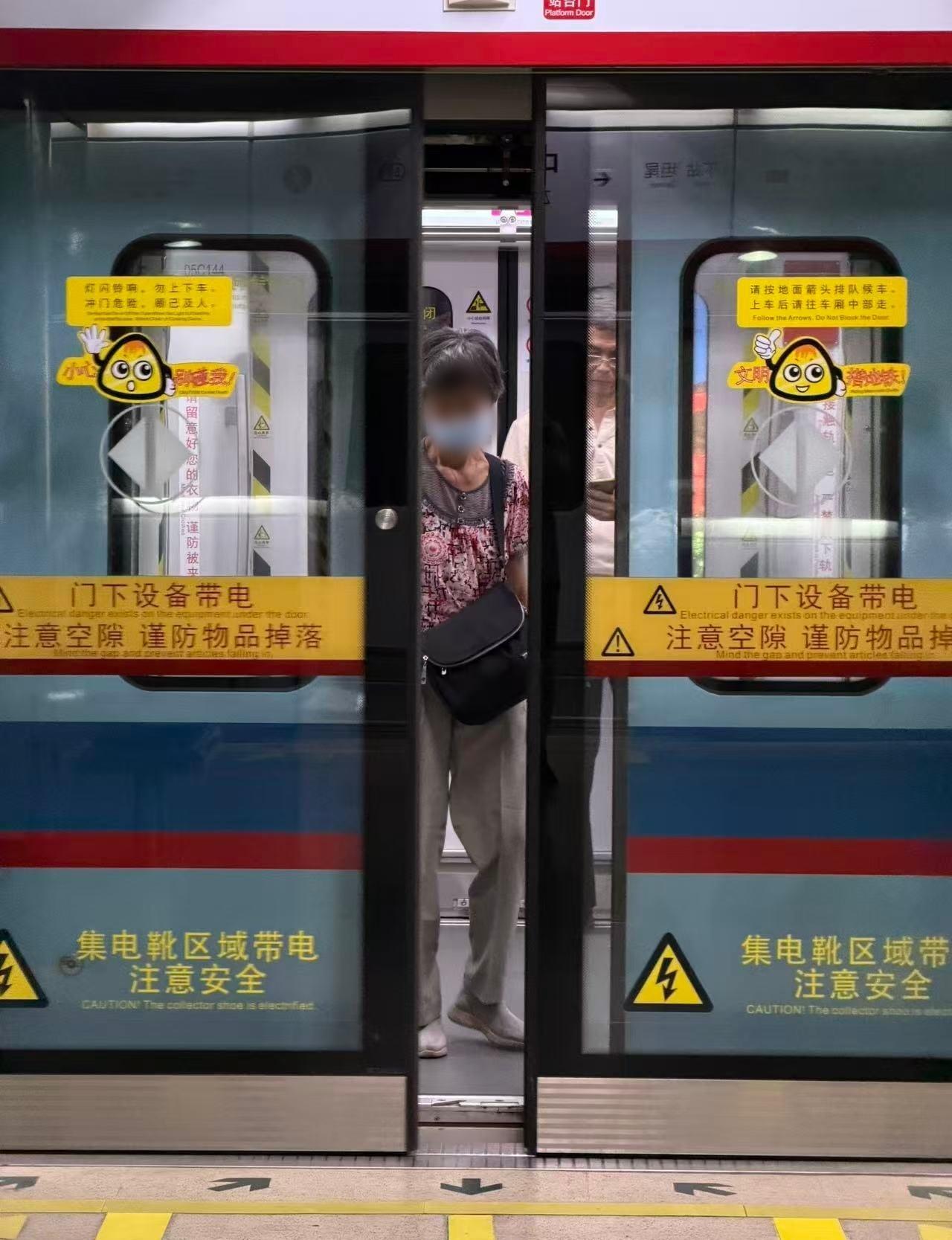 列车开门后,先下后上,快速通行。灯闪铃响后,请停止上下车。图:管俊鸿