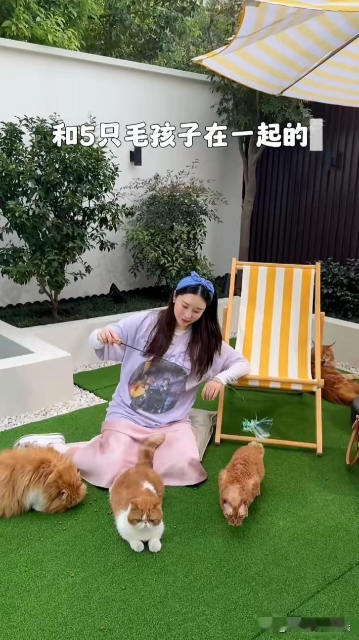 阚清子的幸福生活,一屋两人,三餐四季,5个毛孩子。 因为她在大别墅里养了5只猫,