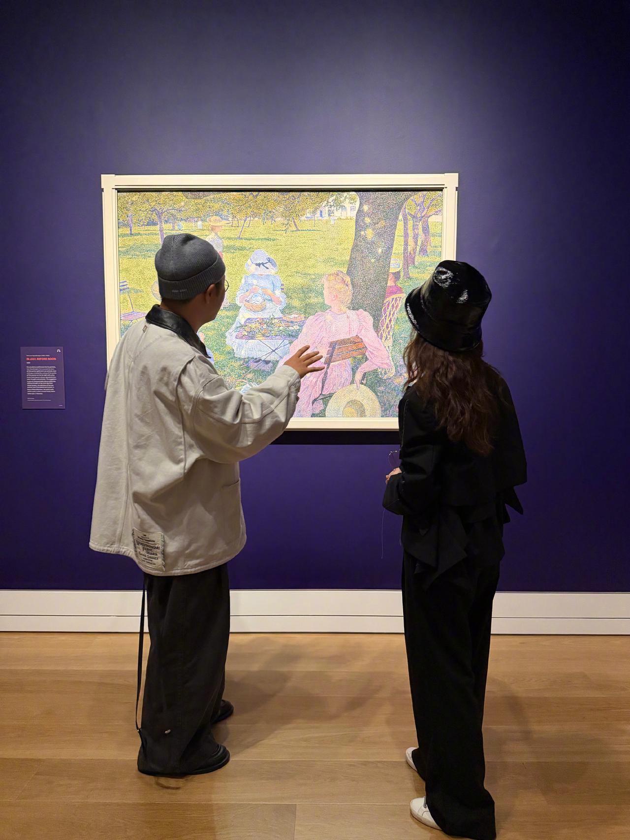 意想不到的合影!这是什么友谊?看着挺熟悉的样子。 两人并肩看展、笑对镜头,画面轻松惬意,杜海涛晒出多张与章泽天在伦敦看展的合影,根本没想到他俩认识! 杜海涛一身休闲白外套搭配阔腿裤,头戴针织帽,章泽天则身穿黑色西装,戴墨镜,蓬松卷发显得随性又知性。两人在画作前热烈讨论,伸手比划,但始终保持半步距离,互动自然又不失分寸感。 近期在伦敦的杜海涛自己也说“全伦敦都在偶遇杜海涛”,二人不仅认识,而且挺熟络,不得不感慨,娱乐圈真的不大。