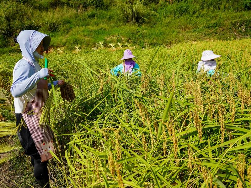 田野里最美的风景,我觉得当属初秋的稻田稻谷。就拿贵州贵阳郊区来说,乡村的稻谷成熟了,同一处稻田因品种、种植时间、位置及颜色渐变,呈现从青到黄的梯次色彩。走在田垄间,稻香清新不刺鼻,让人满足又放松。黄澄澄的谷子把谷穗压弯了腰,“实低头、虚朝上”,沉甸甸的就预示着好年景。还有那紫色的稻谷,或许是糯稻。梯田让稻田有层次感,也是水源合理利用的智慧体现。稻田上有蜻蜓飞舞,小河里鸭鹅嬉戏。9 月到 10 月,这片金色田野就是绝佳乡野秋色,出片率超高,再过些时日,稻谷收藏时节又是另一番风景。