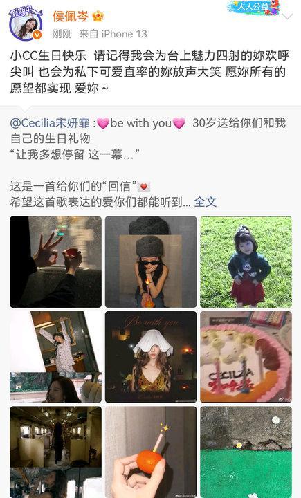 侯佩岑祝宋妍霏生日快乐侯佩岑祝宋妍霏CC生日快乐 侯佩岑祝贺宋妍霏生日快乐啦