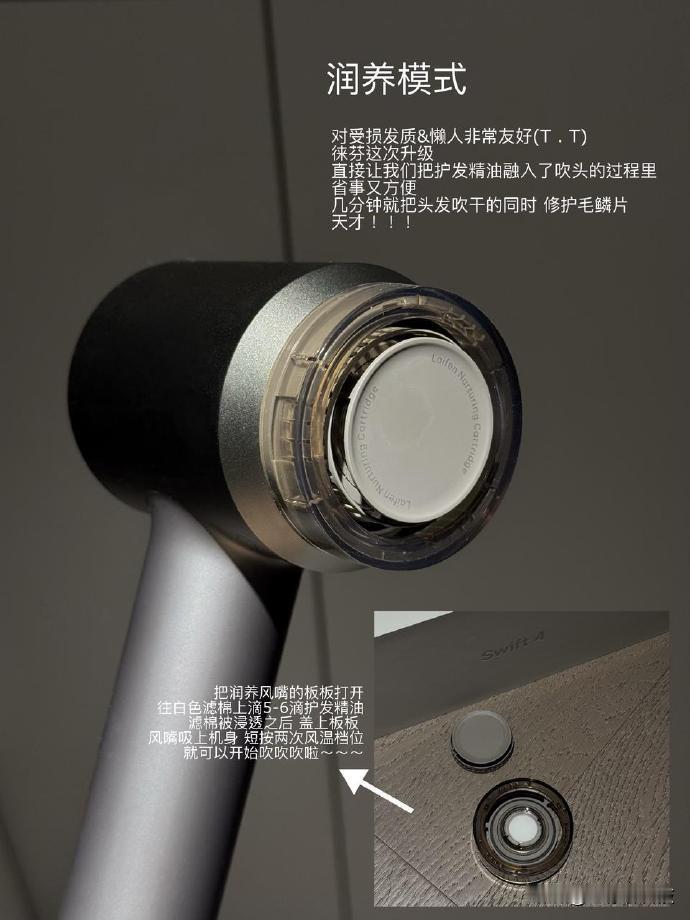 关注我久的朋友应该都记得我两年前分享过徕芬吹风机!用到现在还好好的 一点没坏! 最近入了徕芬Swift 4 旧的就放起来当备用了哈哈哈哈哈 很惊喜!!!更快、更柔顺、更好用了! 开始期待秋冬养发了嘿嘿😄 这次最大的亮点就是配了两个专业风嘴,直接拉开了和普通吹风机的差距! ✅ 顺滑风嘴:快速打造高颅顶&直发效果 ⚪适合场景: 日常快速出门、需要做造型的时候。 ⚪使用心得: 风嘴出的风更集中,能轻松把发根吹立起来,高颅顶瞬间就有了!同时也能把头发吹得又顺又直,自带拉直效果,对于细软塌发质来说简直是救命神器。 ✅ 润养风嘴(核心黑科技):吹护一体,告别毛躁 ⚪适合场景: 干枯、受损、漂染后的深度护理;每周1-2次的发质保养。 ⚪使用心得: 这才是Swift 4的灵魂!把护发精油滴入顶部的润养仓,吹风时风嘴会将精油打散成微米级粒子,随着风力均匀渗透进发丝。 效果: 真的是一边吹干一边修护!我这种常年漂染的细软稻草头,用完它之后头发顺滑到不行,梳子一梳到底,毛鳞片被安排得服服帖帖,光泽感也出来了。从此护发精油的钱都省了! 而且还能连接专属APP/小🍊序 6种风温 4种风速 你想怎么调都可以 打造专属于自己的吹风机!生活幸福感十足! 我会在APP里为不同场景设置模式:比如「日常速干模式」、「头皮护理模式(用冷风)」、「周末润养模式」。一键切换,超级智能,生活幸福感拉满! 💡 秋冬护发养发补充:秋冬天气干燥+换季掉发高发期,用Swift 4的润养模式简直就是救星!冷风呵护头皮,热风快速带走水分,最后切到润养模式锁住营养,吹完发丝顺滑不炸毛,发根也不会干痒紧绷。尤其像我这种容易掉发的人,感觉整个秋冬都不担心了!!! 颜值放最后夸 因为我觉得机身本身使用感受太出彩了哈哈哈哈哈 颜值反而不值一提 这次的设计风格也是相当好看 我很喜欢我选的这个灰 高质感拉满🥰 顺便来抽个奖吧,截止10月29号中午12:00,从转发本条文案的小伙伴中抽一个20元现金红包哟,快快参与吧。