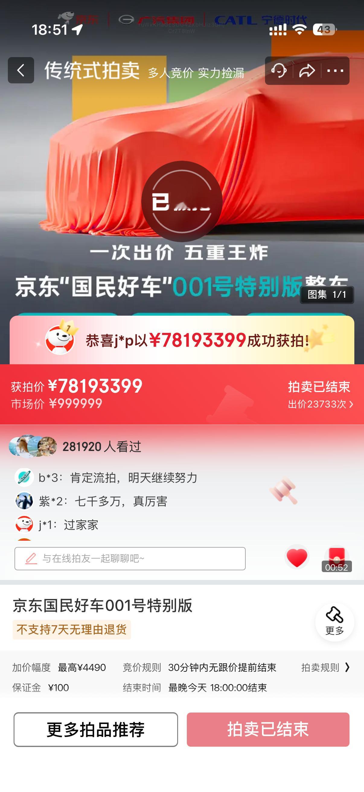 京东001号国民车20万人参拍拍卖价78193399元这到底是个啥车啊[费解]