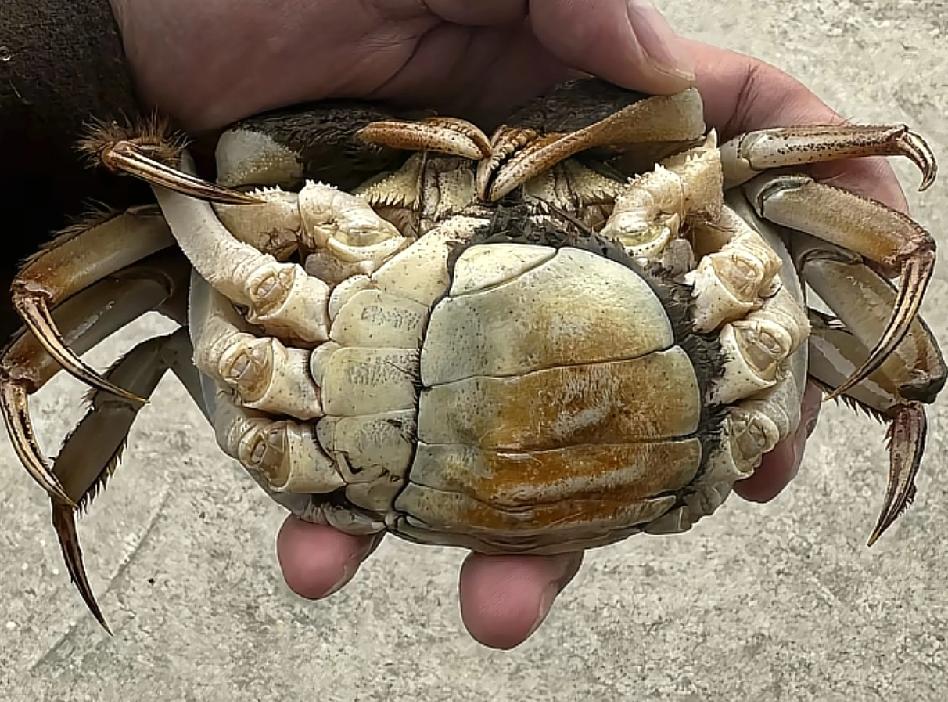 真是稀奇,本来就分不清公母了,现在还有雌雄同体的,这到底是啥稀罕物,基因突变吗? 江苏有位大哥,前几天在长江支流收网的时候,看到笼里有只长得特别的青壳蟹,左右两边完全是两个“性别”! 单看表面,左边肚子窄窄长长的,大钳子又粗又壮,是公蟹的样子;右边肚子壳宽宽圆圆,蟹壳上的毛细细软软的,是母蟹的样子。 一翻开里面的,那个生殖器官都是一边公的一边母的,妥妥的“阴阳蟹”。可惜捞上来的时候已经Si了,大哥也没当回事,当场蟹壳就给拆了。 网上有懂行的人说,这叫“雌雄嵌合体”,是螃蟹胚胎发育时染色体分裂出了问题,才长成这样,概率极小,很有研究价值。结果就这么拆了,确实有点可惜了。 你看现在水里的奇怪生物越来越多,说不定和环境变化有关。下次再碰到这种变异的,最好是先拍下来发网上问问,看有没有专业的联系,最大可能保留住这些基因的“秘密”,这才是价值最大化的方式,你说是吧?