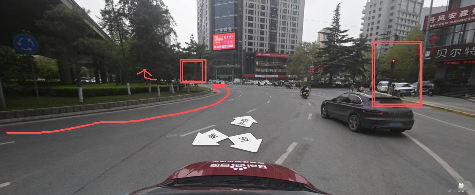 🔻唯二踩刹车的介入,一个是明德门向西转弯后在雁南二路转辅路再转含光路这一段,这里有个学校,行人、逆行非机动车和机动车混在一起,肉脚开车都会比较难决策,这里不介入我就下不了辅路了,另一个是含光路环岛,一圈三个红绿灯,这个环岛去年我第一次开都迷糊,我猜是h7没有理解这个红绿灯和车道的关系,这个红绿灯对环岛内各个车道的车辆都有效的
