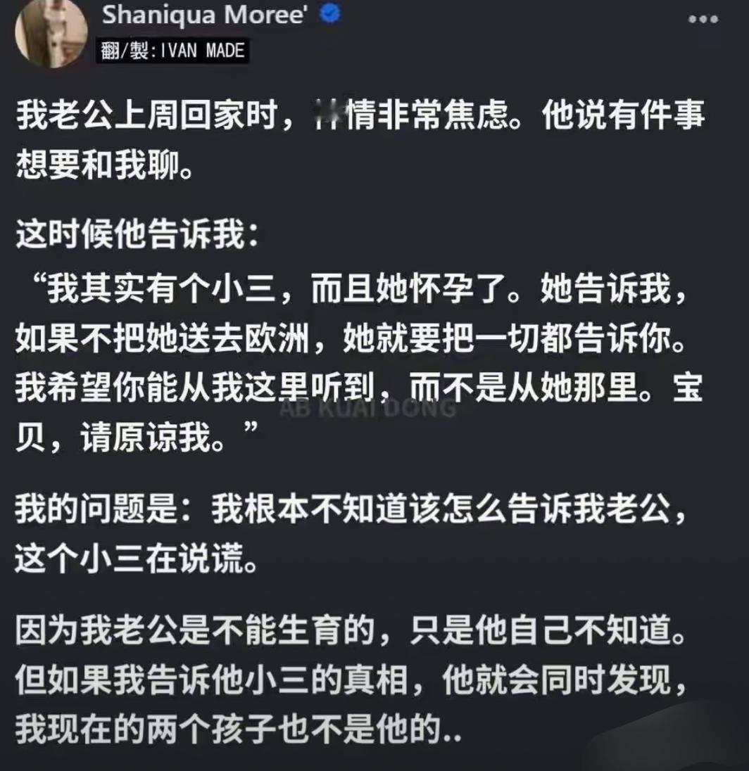 老公,你看看你干的啥事儿啊!我这主母的面子都被你丢光了!你背叛家庭,跟那小三勾搭在一起,还有没有点责任心啊?你对得起我,对得起这个家不? 至于那小三,我今儿大方一回,去母留子。孩子无辜,我能养,你拿了钱麻溜走人。走之前得做亲子鉴定,别弄个不知道哪来的野种进我家。破坏别人家庭可没啥光彩的,你这小三骂名这辈子都洗不掉,赶紧滚! 不知道这样做能不能保住我的面子,撕破小三的伪装,惩罚老公的不忠。