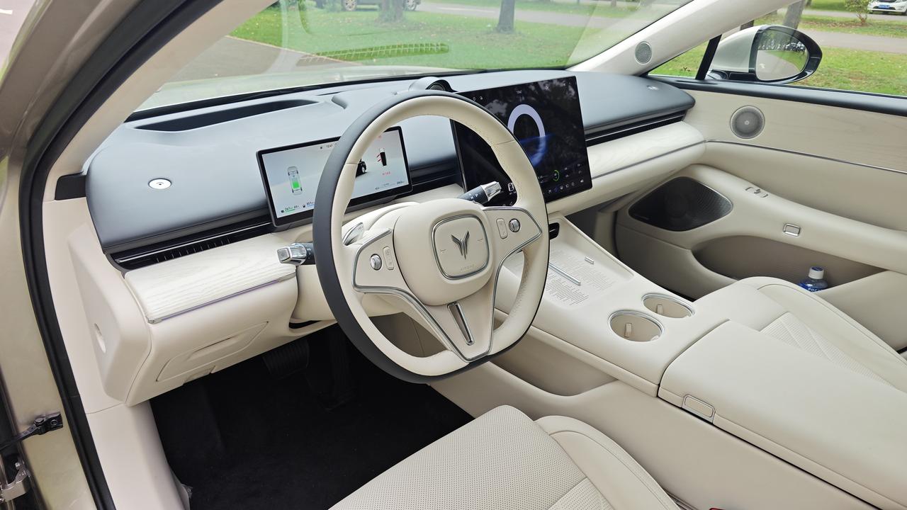 今天来试驾岚图追光L,这外观尊感很足啊。双色车身加大饼圈,气场营造到位。空间也很