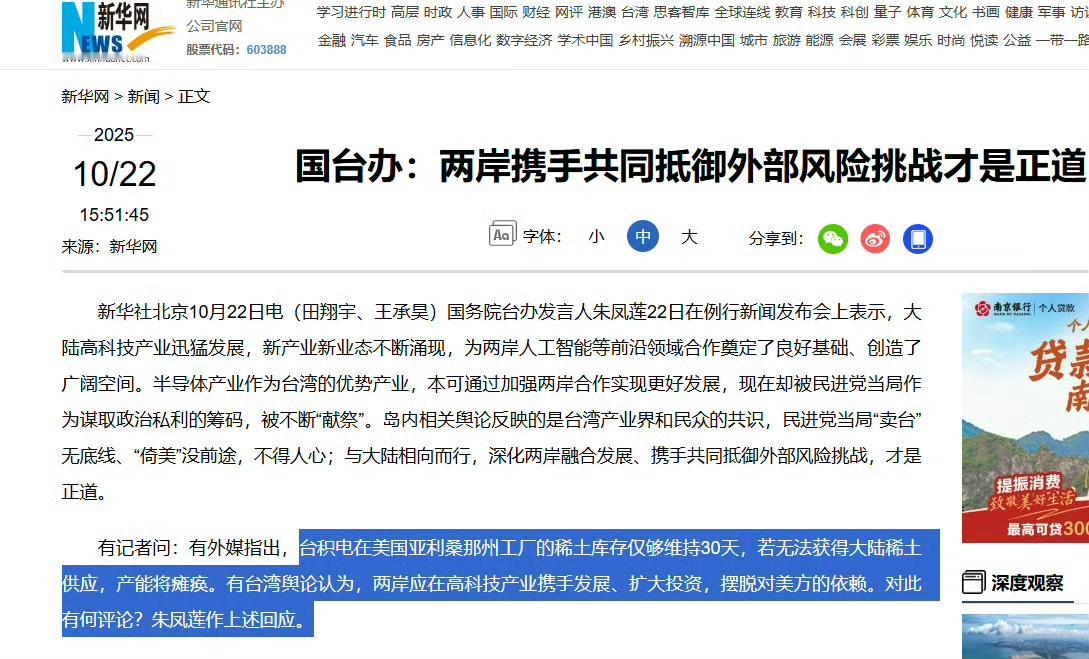 外媒说台积电在美国的工厂的稀土只够三十天了,三十天后如果没有新的供应就只能停工。这事吧,对台积电还真是个好事。 台积电的美国工厂本就是被强扭的瓜,开工一直在亏钱。现在能用稀土不够的理由停工,台积电表面叫苦,暗地里高兴还来不及。