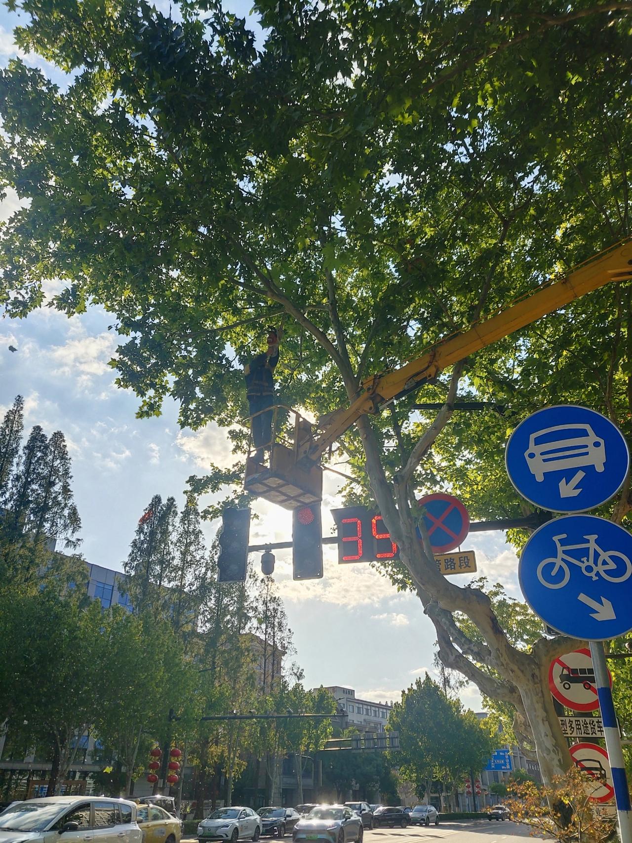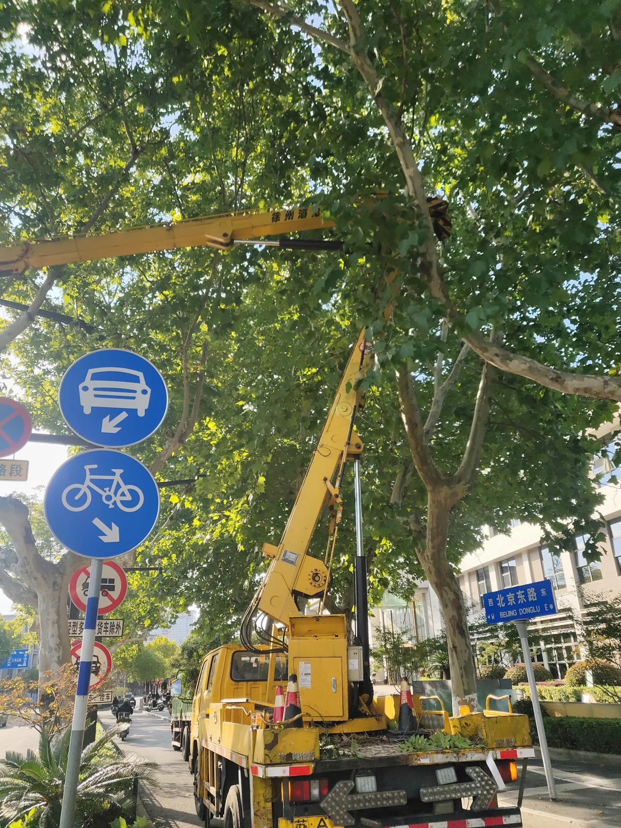 阴雨了半个月,昨天南京终于天晴了,抬头望天,天空美如画布,草和树叶也被连绵的风雨洗的干干净净,在阳光下绿的发亮,空气被净化了,桂花一夜间又开了,一路都是清新香甜的味道。 秋迟到了,但终于还是来了,这个天去紫金山中山陵逛逛,估计舒服的能跳起来。 哦,也可以再等几天,等乌桕变成彩色,银杏变成金黄,枫树变的火红,落羽杉颜色渐变……南京的色彩层次感就出来了。 现在就要准备赶着赏秋了,明孝陵的石象路,植物园的月牙堤,玄武湖的银杏大道,栖霞山的枫林,植物园的红枫岗,还有毗卢寺、惠济寺、朝天宫、灵谷寺……色彩斑斓的秋天,是南京最美的季节。 路上园林工人开始修树,为树木过冬做准备了。