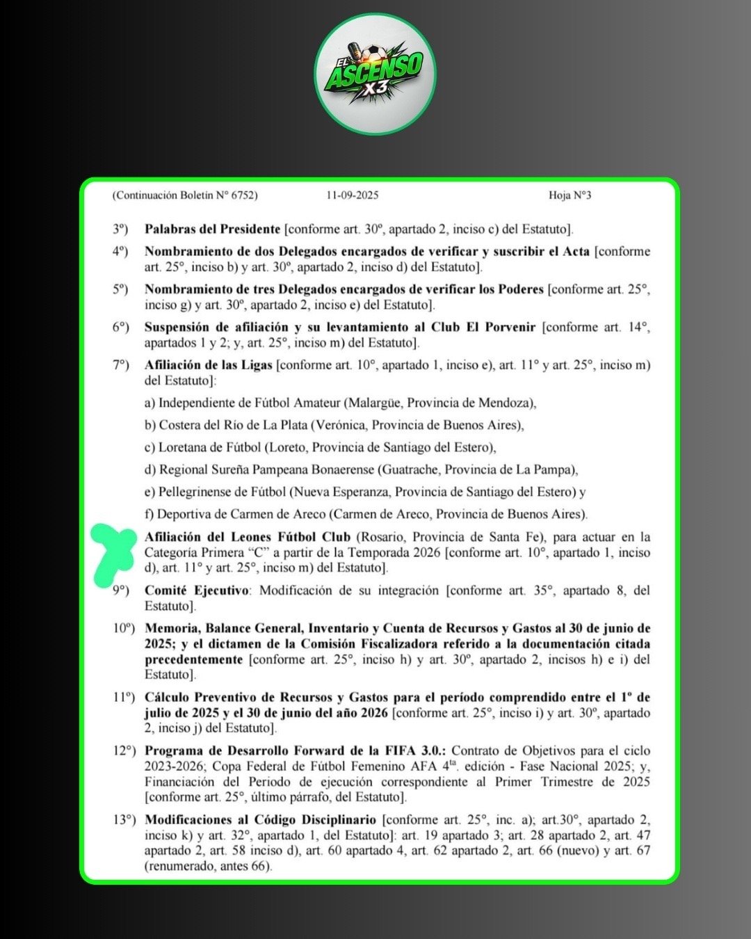 🤯🇦🇷👉阿根廷足协在官方公报中确认:梅西家族球队罗萨里奥狮子队 (Leones FC de Rosario) 将从 2026 年开始参加阿根廷丙级联赛。