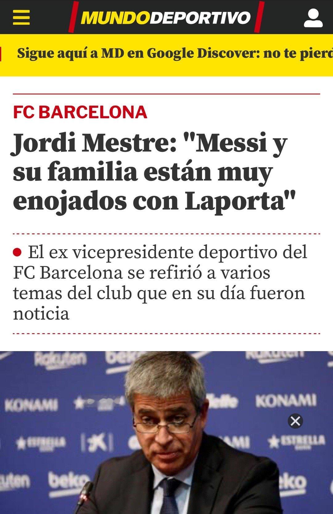 🚨《世体》报道:"梅西及其家人对拉波尔塔非常不满"