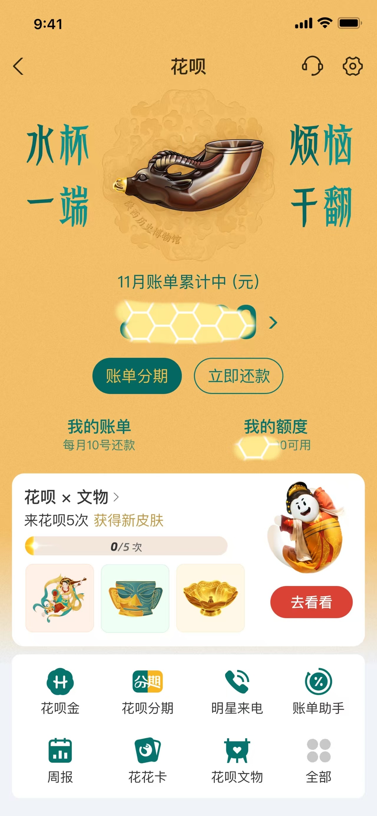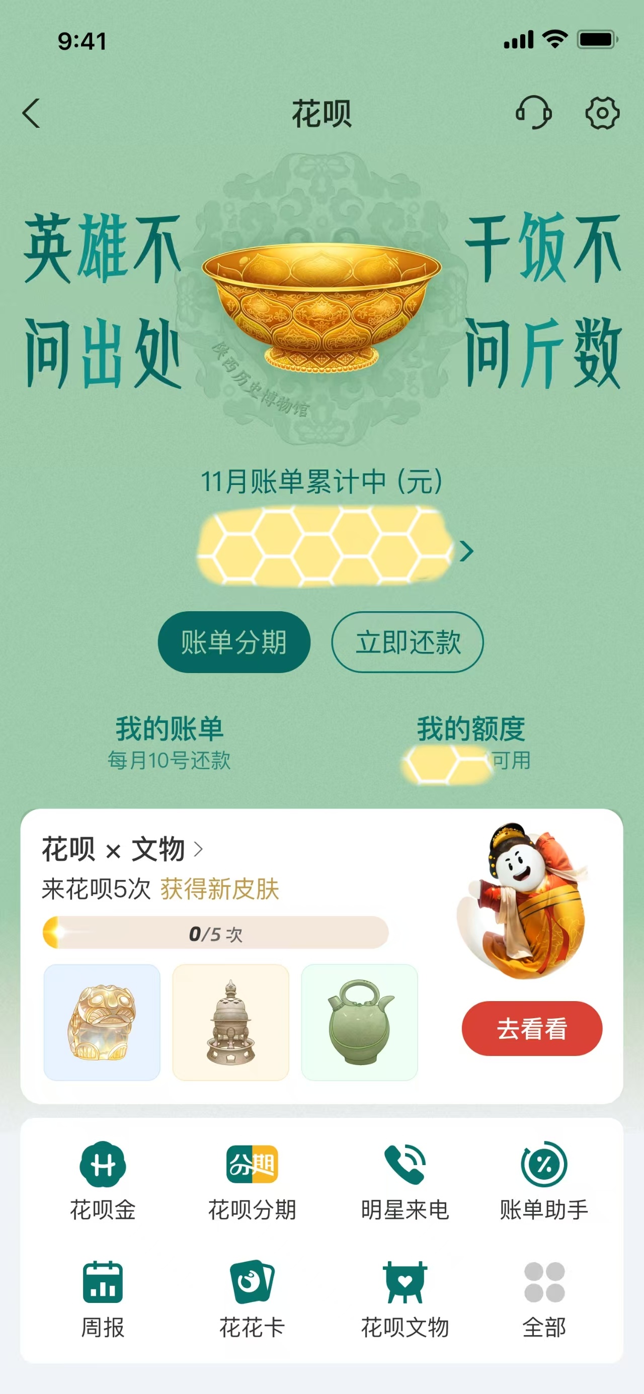 陕历博也有自己的电子皮肤了 毕竟是文物多到往外借,也不催人还的博物馆,因为馆里根本放不下[doge]。花呗怎么才上了3件嘛,剩下的171万件还要再努努力啊,争取让陕历博的每一件文物都要有自己电子皮肤哈哈哈哈,可以让我每天都换不同的~
