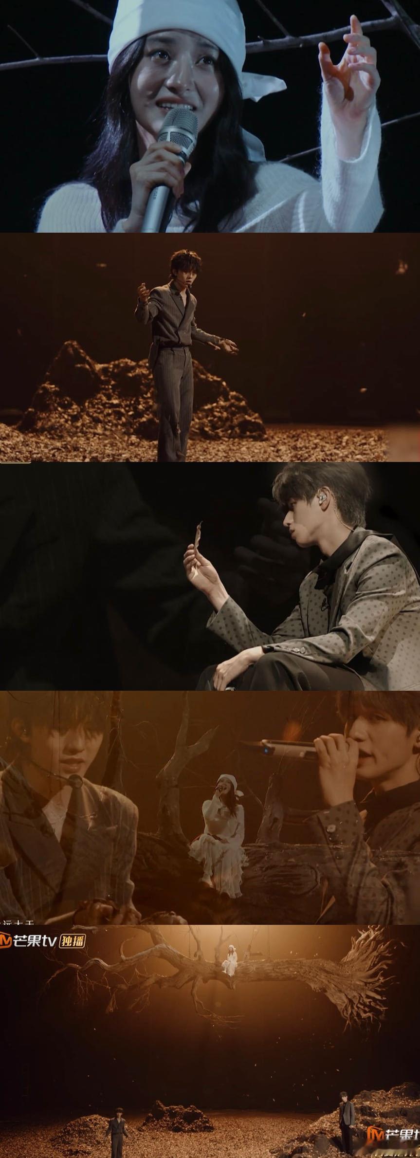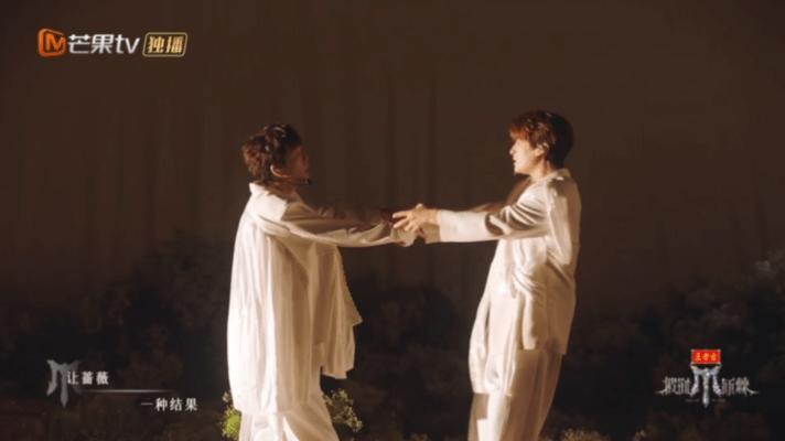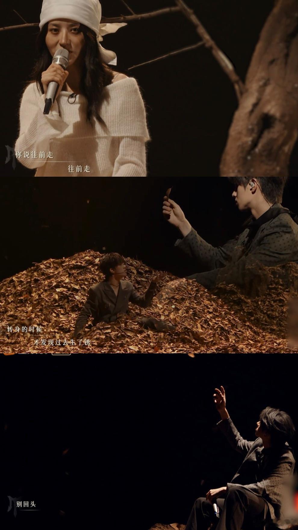 披哥把生态系统搬上了舞台 是真的!《我》的舞台直接把森林“种”在了现场——枯木、白花、飞舞的蝴蝶,张远王栎鑫在花丛间起舞,苏醒和声一出来,仿佛闯进了一场关于“自我”的自然诗篇,芒果舞美这波直接封神 ​​​