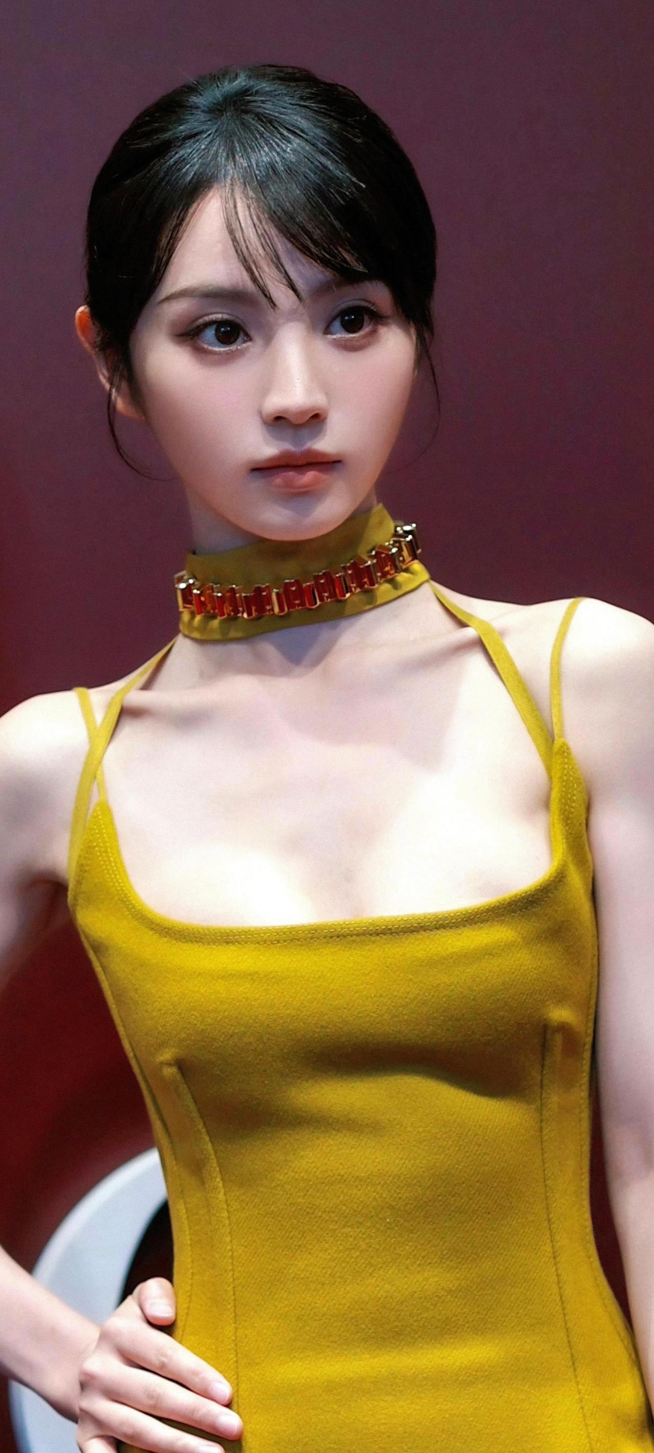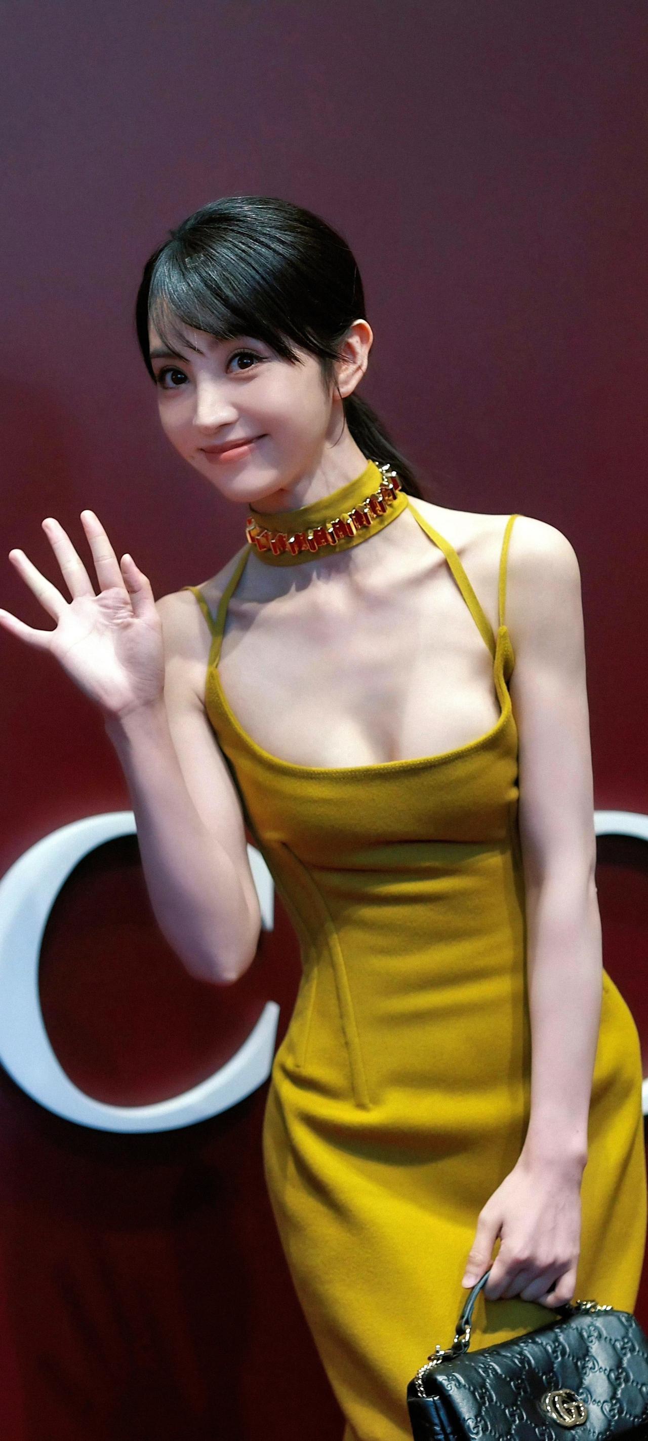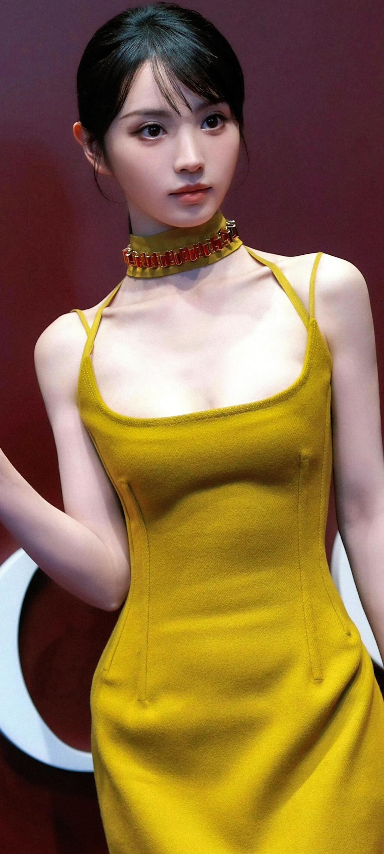 田曦薇,黄色连衣裙搭配金属颈饰,优雅又迷人!