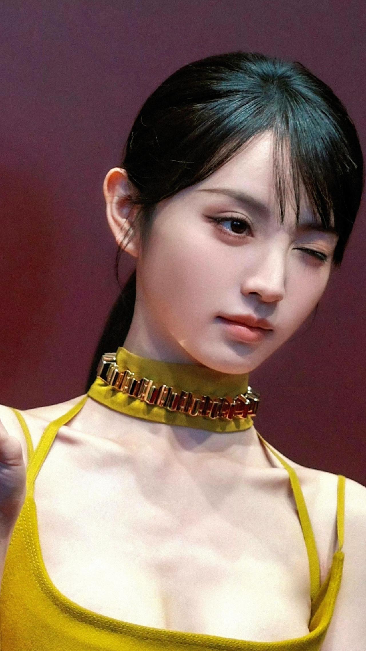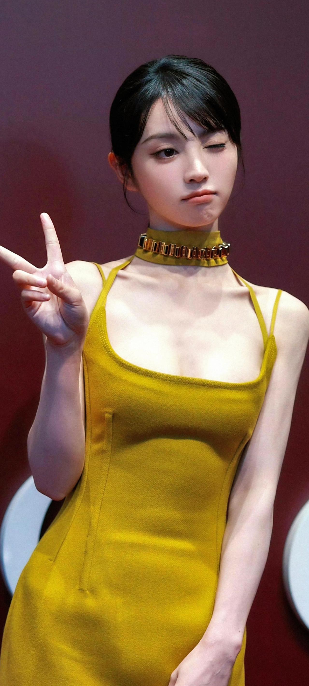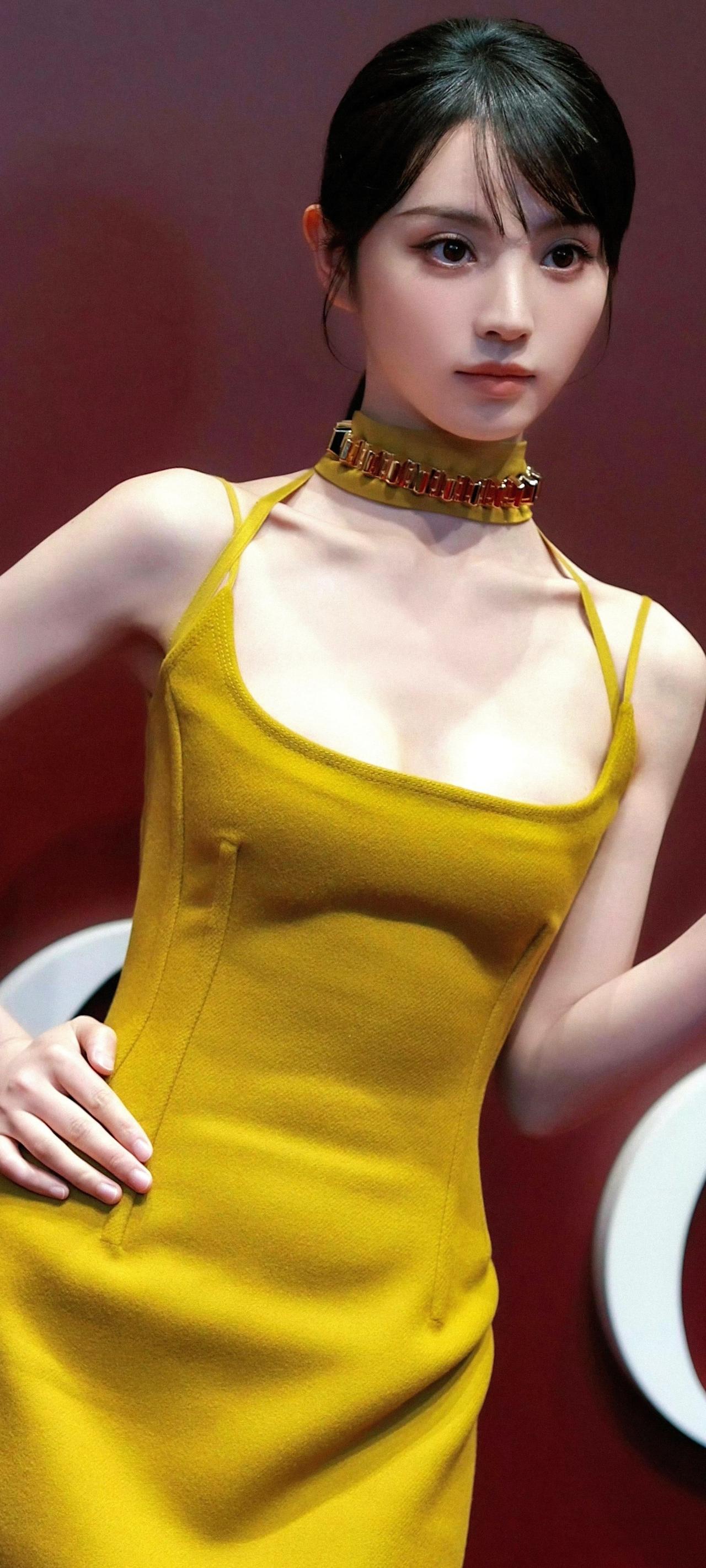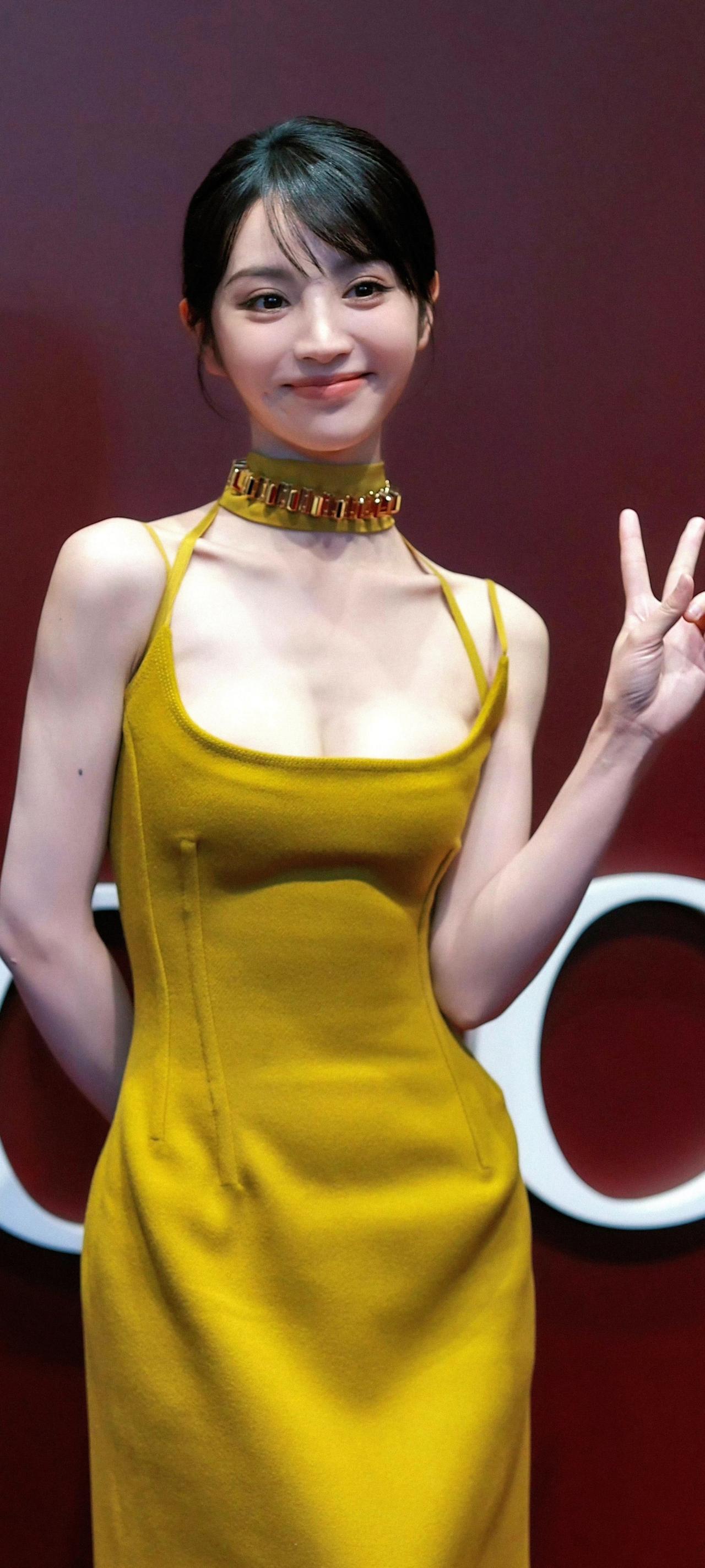 田曦薇,黄色连衣裙搭配金属颈饰,优雅又迷人!