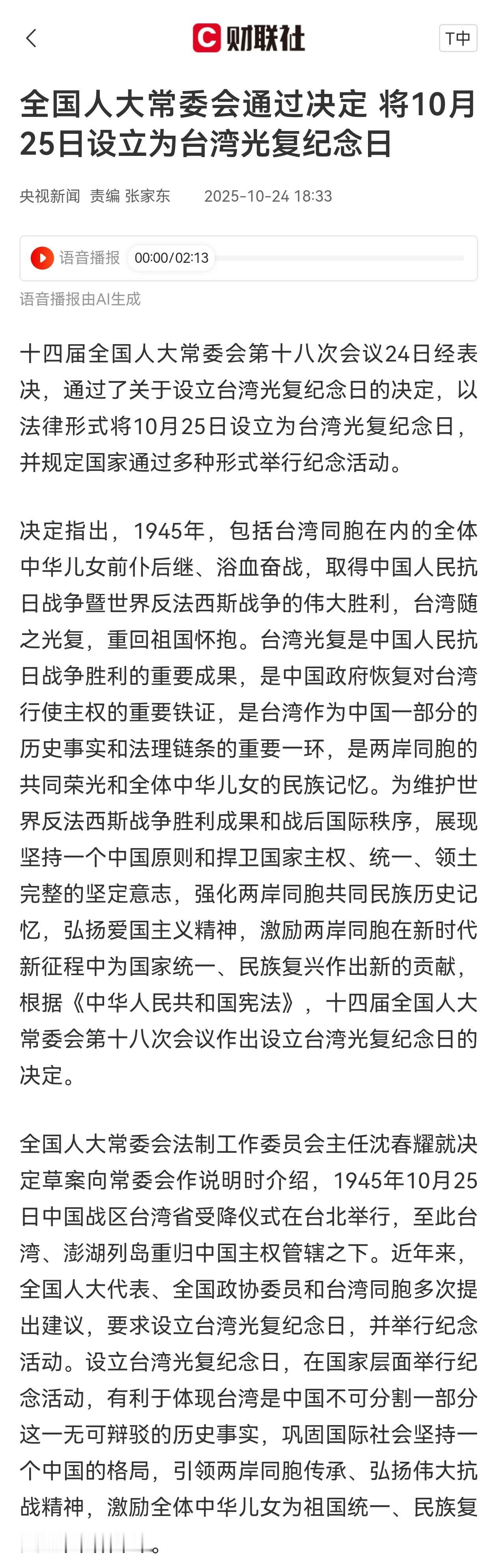 10月25日不仅是抗美援朝纪念日,不仅是恢复中华人民共和国在联合国的一切合法权利的日子,从此以后还是台湾光复节!