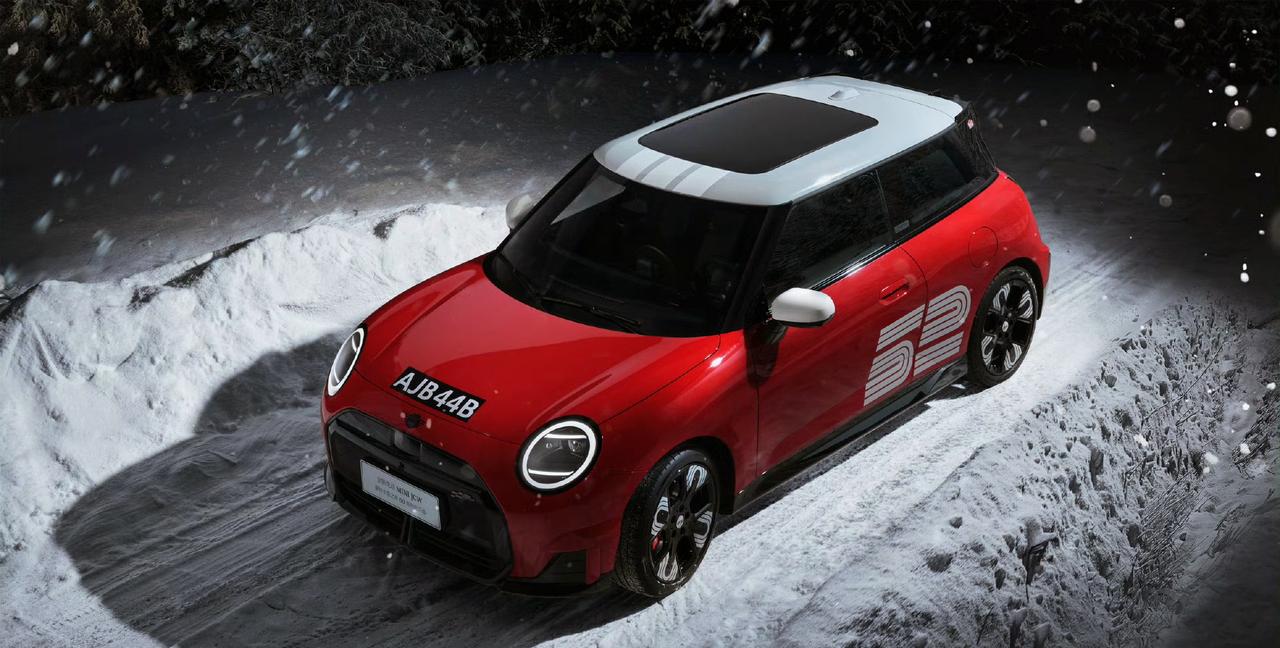 全球限量100台!电动MINI JCW蒙特卡洛之夜60周年纪念版。 国内售价:24.68万元 车头有英式复古冠军号牌“AJB 44B” 红车身+白顶,上面是雪地轨迹压纹 B柱有1965 纪念铭牌 还有红安全带~看着挺带劲的 190kW的碳化硅电机 H型电池布局+电池车身一体化设计 有底盘控制系统DIVC,动力底盘控制二域合一 JCW专属标定 相信开起来一定不会让人失望!