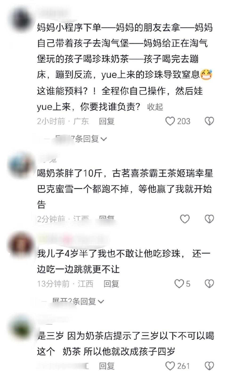 男童喝奶茶身亡家长指控珍珠尺寸过大律师称奶茶店如符标准则男童窒息无责