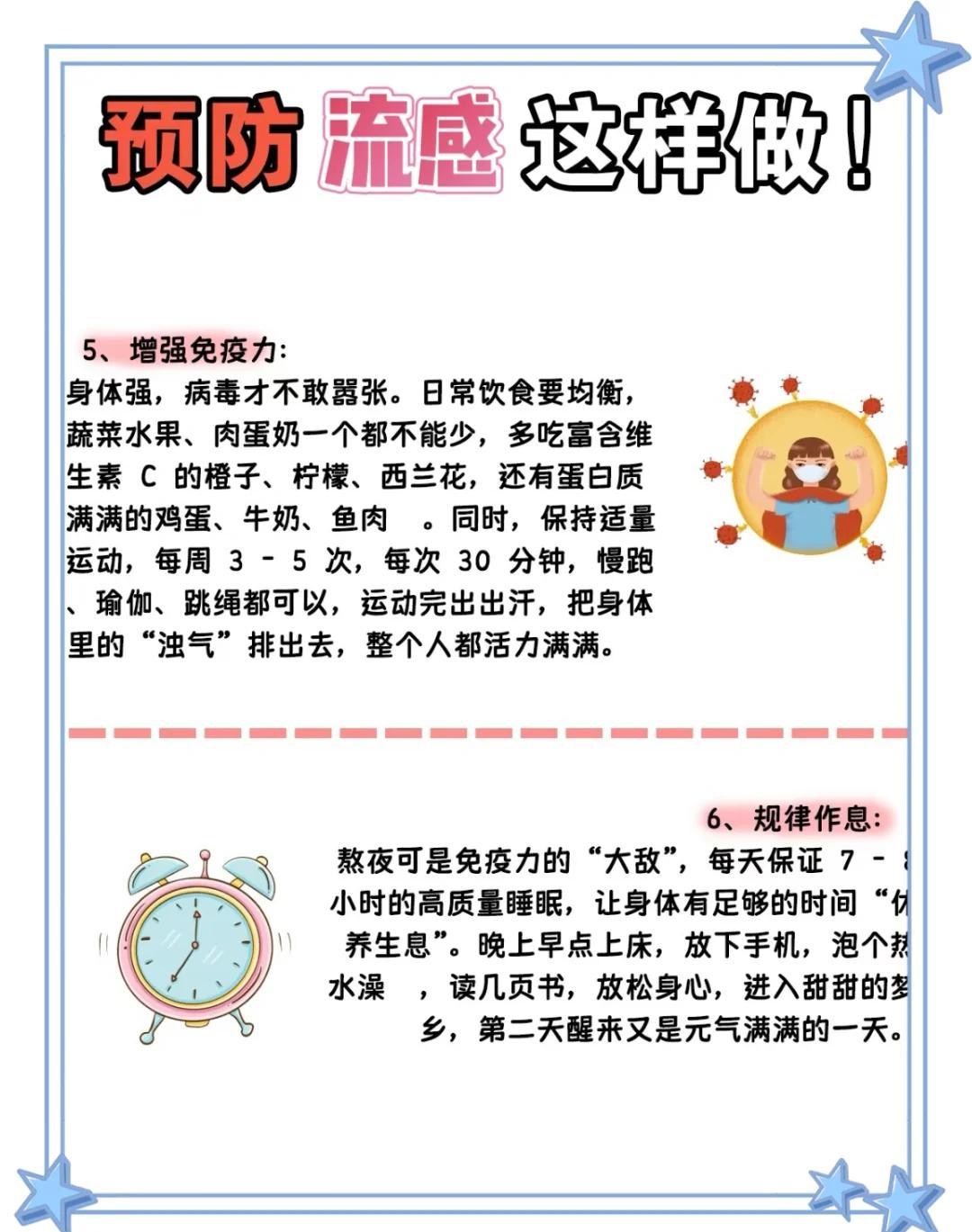 流感高发季防护指南面对流感,比起囤药,提升自身免疫力才是根本。保证每天7-8小时睡眠,让身体有足够时间修复;多吃富含维生素C的新鲜果蔬,为免疫系统“充电”;每天抽15分钟做拉伸、快走等轻度运动,激活身体防御机制。规律作息+均衡饮食+适度运动,这组“组合拳”,比任何外部防护都更可靠。
