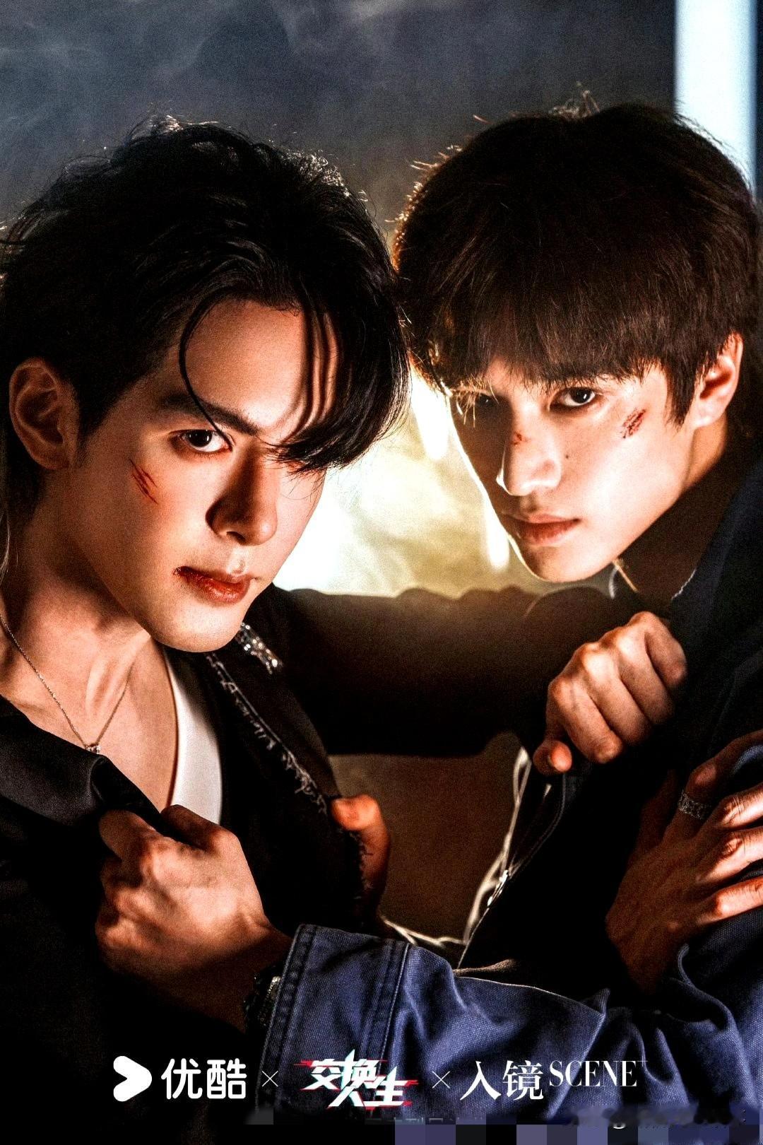 《交换人生》这组双人大片直接把张力拉满了! 曾舜晞×张康乐这破碎感+宿命感谁顶得住? 伤痕妆配近身对峙,烟雾光影里全是故事感, 每帧都像在演“疯批共生”,这剧的氛围感已经赢麻了! 交换人生双人大片
