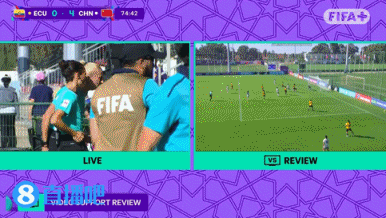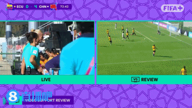 第73分钟,厄瓜多尔后卫禁区疑似手球,主裁经VAR确认后最终没给点球。↓