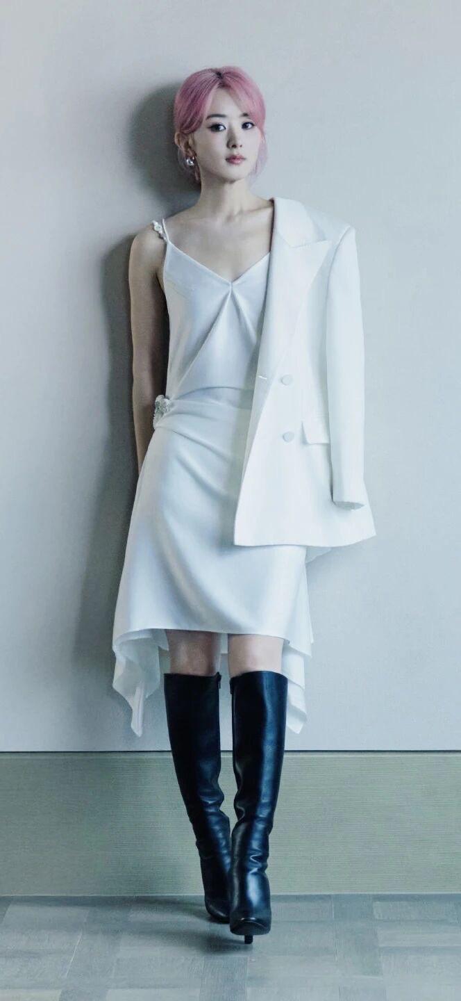 张天爱跟素人合影,胯真的好宽,大宅院似的