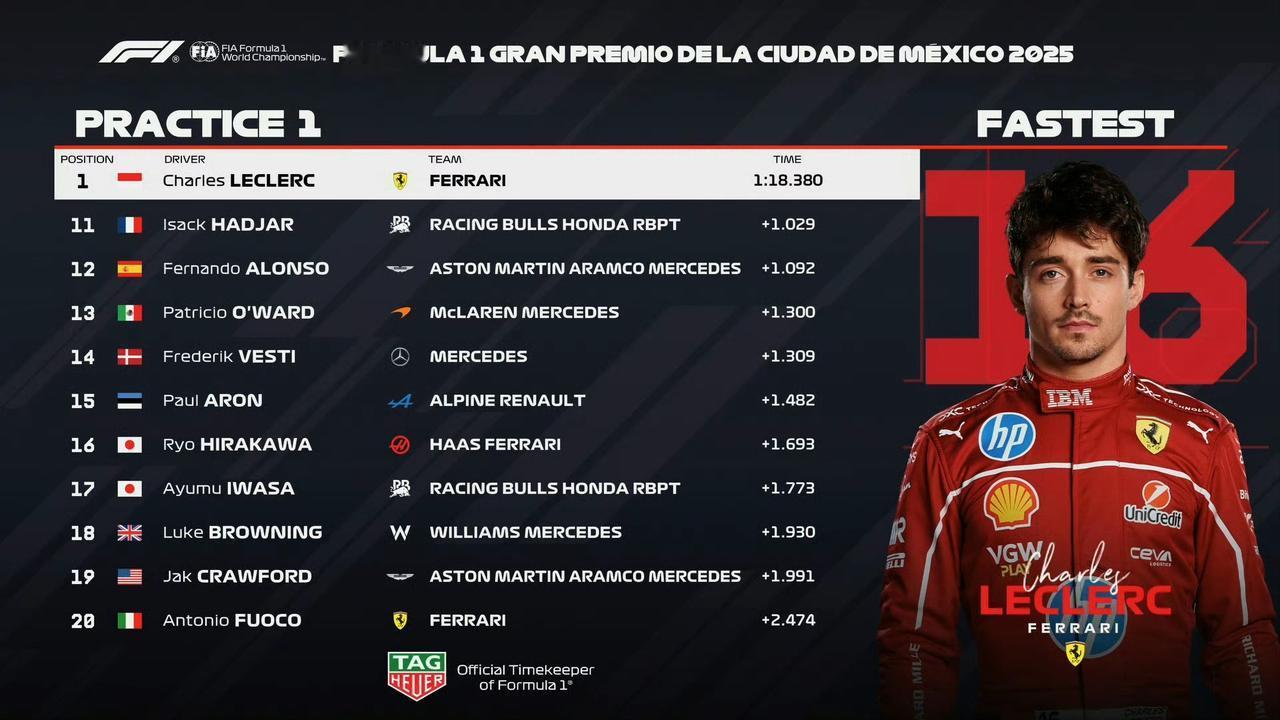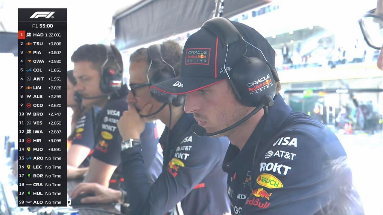 维斯塔潘的RB21赛车在一练中被林德布拉德接管了,潘子在指挥台上表情很凝重,肉眼可见的紧张…… 好在林德布拉德一练成绩不错,第六,排名倒数的都是一些练习车手。