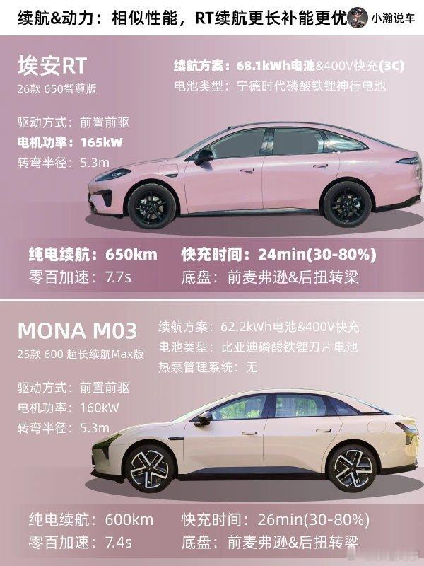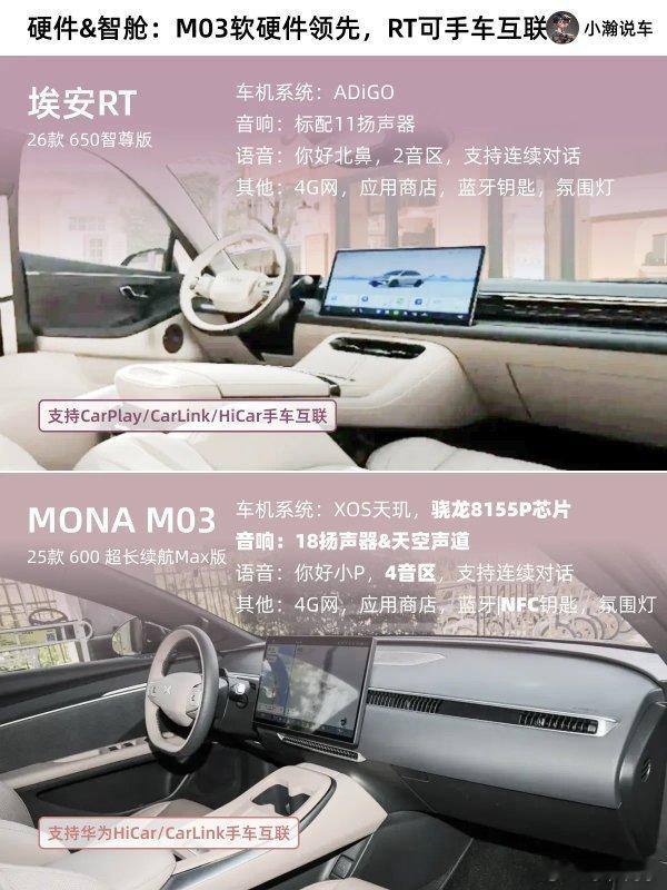 总的来说,26款AION RT相比老款除了降价之外,全系宁德电池+650km续航的组合拳确实很有杀伤力,再加上激光雷达和高阶智能驾驶辅助,已然成了一款性价比水桶车。那么如果与目前这个价位的销🏆小鹏MONA M03相比,你会选择这款AION RT吗?