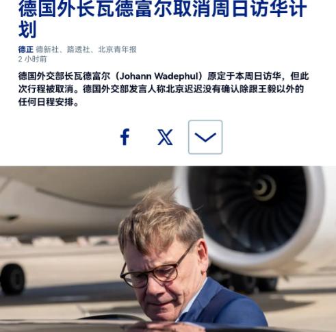 立规矩了!在我们外交部驳斥德国外长之后,德国外长访华行程取消!10月24日,根据德国之声报道,德媒表示,德国外长瓦德富尔取消周日访华计划。而至于为何取消,德国外交部发言人表示,北京迟迟没有确认除跟王毅外长以外的任何日程安排。 很显然,从德国的表态来看,看起来是德国的外长只能与我们的王毅外长会晤,这让德国方面不满。   就在出发前,瓦德富尔明确放话,嘴上说德国坚持“一个中国”政策,话锋一转又说“会自己决定怎么实施”,还强调不支持用武力改变台海现状。   这种表态其实正是在故意模糊原则,把问题递回到中国面前,想把自己裹在局外人的位置上,只想着揩油不想担责,国际外交本来讲究相互尊重,他这番话实际上踩了中国的底线。   面对挑衅,我们这边没有选择沉默,外交部很快回击,直接点出世界只有一个中国,台湾地区是中国不可分割的部分,这条铁则没有任何谈判和自定义的空间。   中国的原则,不会因外人的花言巧语而改变,其实早在德国外长提这些话之前,中方的立场就很明晰,中方底线从来不会退缩。   这么一来,德国那边的说辞就让人怀疑了,说是行程没敲定,实际上很可能是中国方面没给他更多机会。毕竟,对这种口是心非、踩着中国红线来做外交秀的人,真没必要委屈成全。   说穿了,这次的取消,倒更像是中国用行动立下了规矩,告诉德国,不端正态度,就没得谈。   瓦德富尔本身也不是第一次在对中国问题上拿中国说事,之前还说我们在制裁朝鲜问题上袖手旁观,在南海问题上漠视规则,这次访问前又接连在日本嚷嚷什么“中国扩张威胁”“科技野心”,依托联合国章程大谈禁止使用武力,还顺便把台湾、南海、东海全都点了一遍。   德国媒体着急取消访问,倒不如说这位外长一直在用各种角度和借口挑事,完全没有当客人的态度。   这件事到头来,其实就是个很清楚的信号,中国在政治红线上寸步不让,谁来都一样。德国外长想一边搞小动作,一边还能顺利访华,基本是自作多情。中国有自己的坚持和尊严,不会在最核心的利益上松口,更不会因为谁的压力和伎俩让步。   经过这次事件,德国政府,以及那些想在中国核心事务上搞动作的国家,很难不重新掂量一下自己的言行。   中国对外传递的态度很简单,想平等交流必须尊重彼此的根本立场,只有建立在相互尊重的基础上,才有真诚交流的空间。否则,哪怕你是再大的国家,也没有特殊待遇。