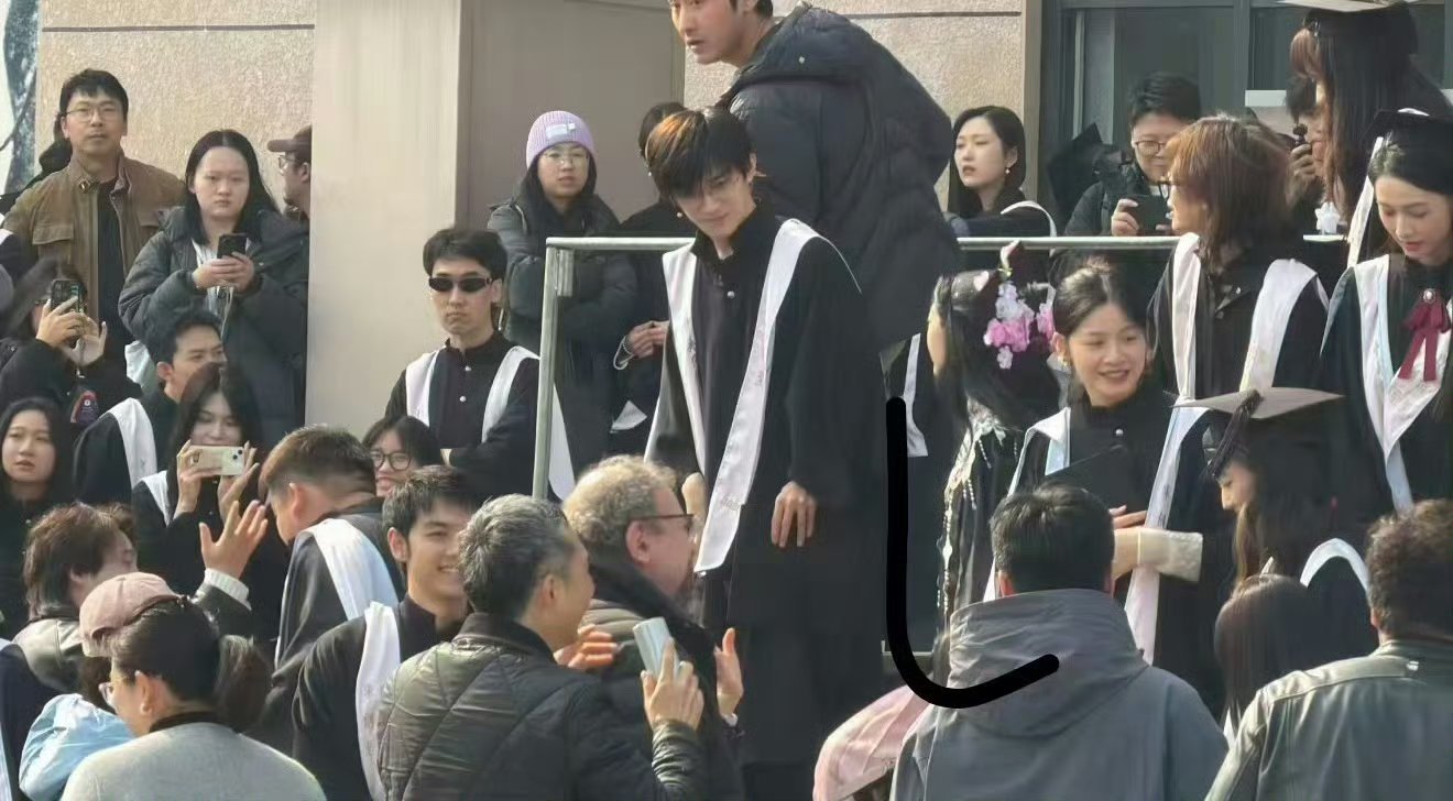 易烊千玺中戏学士服毕业合照🎓怎么还在合照里看到张雪迎了,他们俩是一届的吗[傻眼