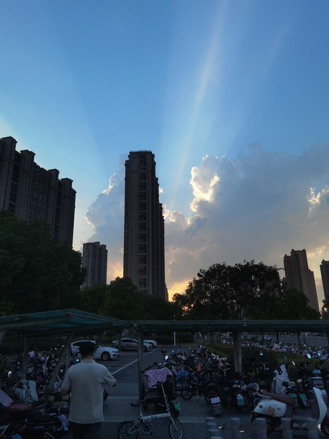 今天周六,刚出地铁,一抬头就被这云惊艳到了。 你看这蓝天,还有从云缝里钻出来的光,像不像给天空开了滤镜?旁边的高楼、树下的车和电动车,还有远处扎堆的人,一下子就把这城市的烟火气和好看的天融到一块儿了。 本来以为周六的地铁口会很挤,结果被这意外的景色治愈了。生活里的小惊喜,就藏在这些抬头的瞬间里,你们说是不是?周六