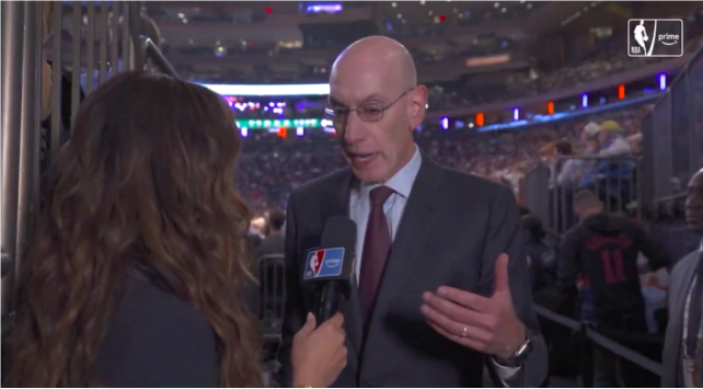 #NBA总裁就非法赌博丑闻道歉# 【#NBA总裁回应史上最大赌博案#:深感不安,向球迷道歉】#NBA总裁就非法赌博丑闻发声# 美国职业篮球联赛(NBA)被爆非法赌博丑闻。据法新社等媒体报道,NBA总裁亚当·萧华当地时间周五(24日)就此首次回应称,他对相关指控“深感不安”,并向球迷道歉。 “我最初反应是深感不安。”萧华当天在纽约尼克斯队主场对阵波士顿凯尔特人队比赛期间接受采访时表示,“对于联盟和球迷来说,没有什么比比赛的公正性更重要。所以我心里很不是滋味,非常难过。”#NBA史上最大规模赌博案#