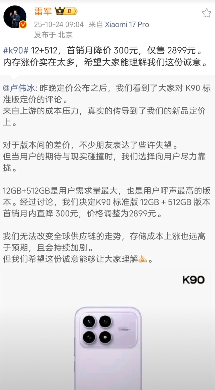 降价是雷军良心发现了吗?是真的让利消费者吗?真想让利的话发布会就直接宣布了吧?或者直接就在定价上体现了,为何要在12小时后决定?是因为雷军在连夜说服高管?