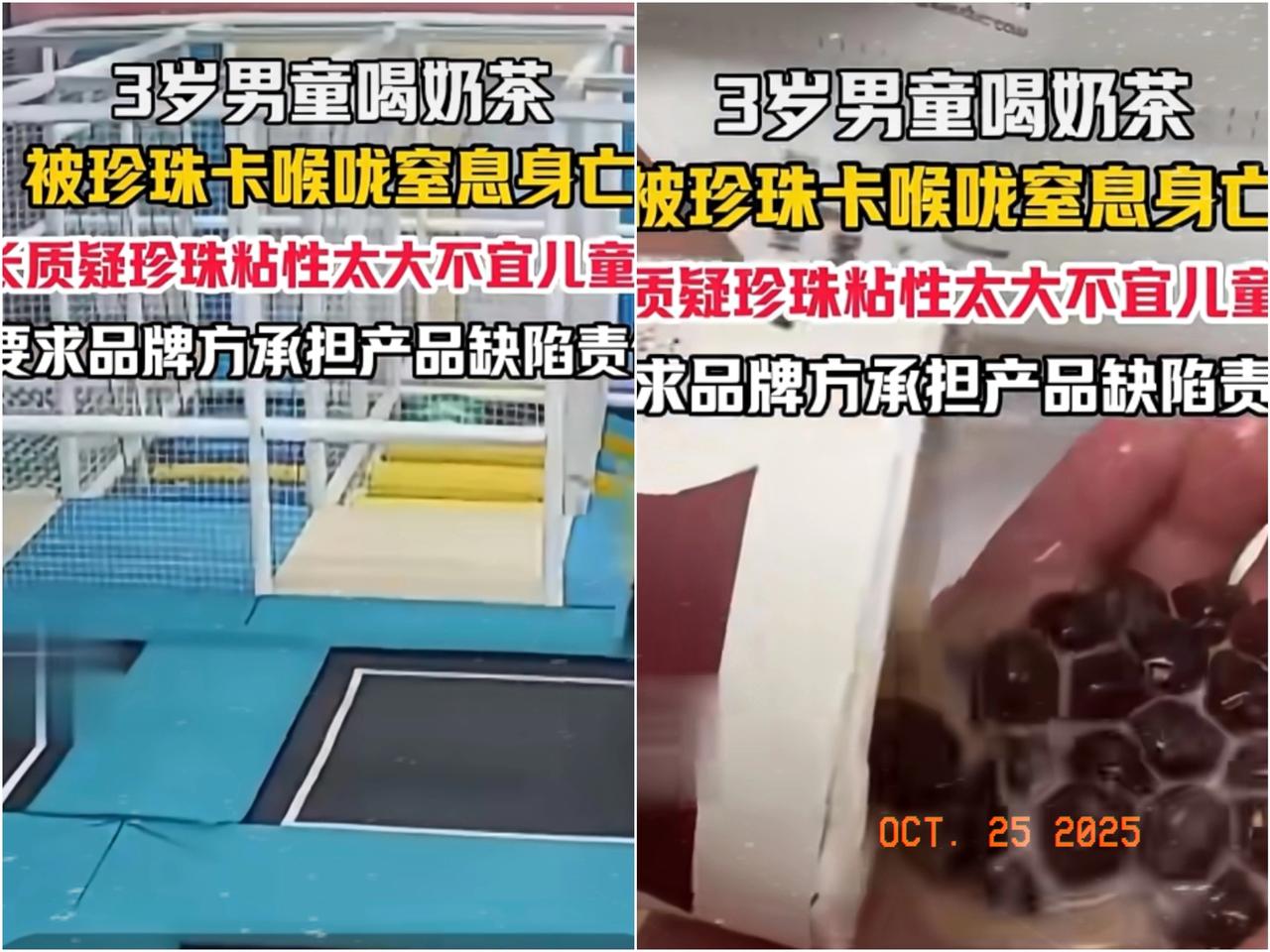 终于弄明白 3岁男童喝奶茶窒息离世 不是奶茶里的珍珠给呛到,而是因为一张蹦蹦床! 这根本不是意外,分明是多重隐患的叠加,罪魁祸首竟是蹦床+珍珠的“致命组合”!孩子蹦跳时呼吸急促,本就易呛,加上黏糊糊的珍珠卡喉,连急救都难施救,最终生命停在了游乐场。去年山东5岁女孩边吃糖边跳险丧命,这次却没了幸运。 说到底,安全不是某个人的责任,而是商家、家长、社会的共同防线。商家该把警示做显眼,家长该守住“进食不蹦跳”的底线,社会更该给儿童游乐空间多上把安全锁。 一个孩子的离开,撕开的不仅是家庭的伤口,更是公共安全的漏洞。你觉得,谁该为这类悲剧负主要责任?
