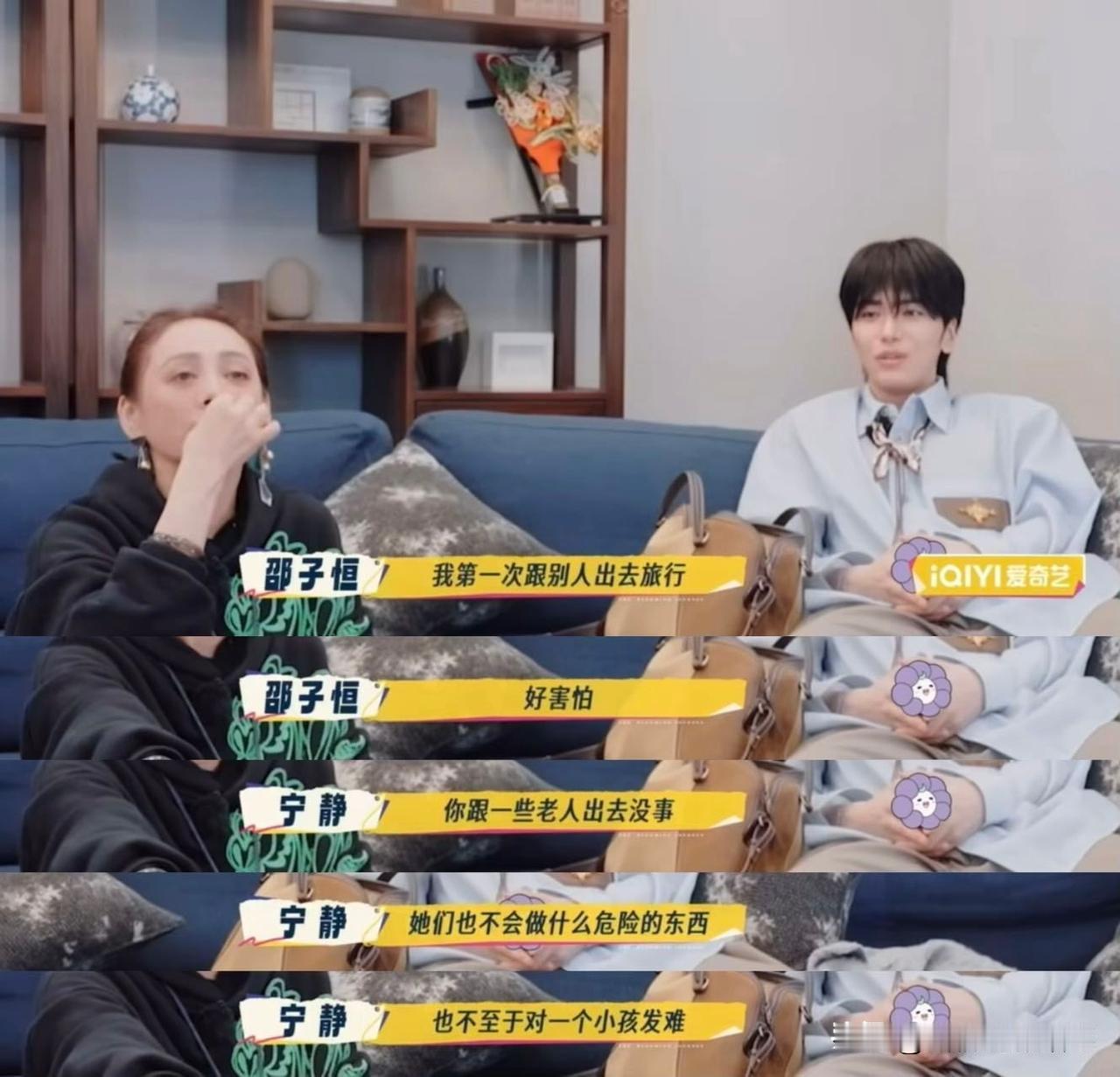 宁静姐嘴替上线!安慰邵子恒的话太戳心了❤️ 邵子恒直言第一次和姐姐们录真人秀超紧张,怕自己不合群还担心出意外~ 宁静秒开解:“跟这些‘老人’出去没事,她们不搞危险的,更不会为难你个小孩!” 霸气又温柔的安慰,瞬间抚平小弟弟的焦虑,静姐这靠谱劲儿谁不爱啊!