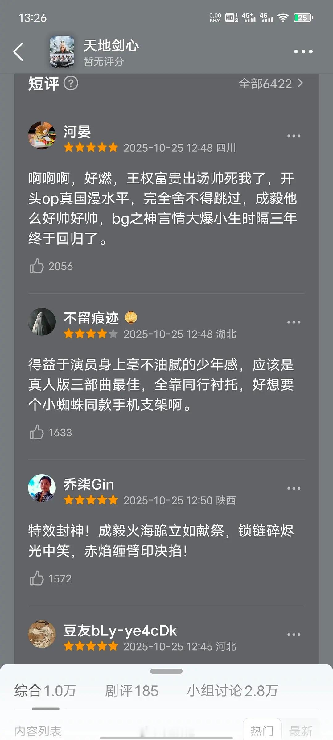 成毅《天地剑心》刚开播一个半小时,豆瓣全五星好评已达六千多