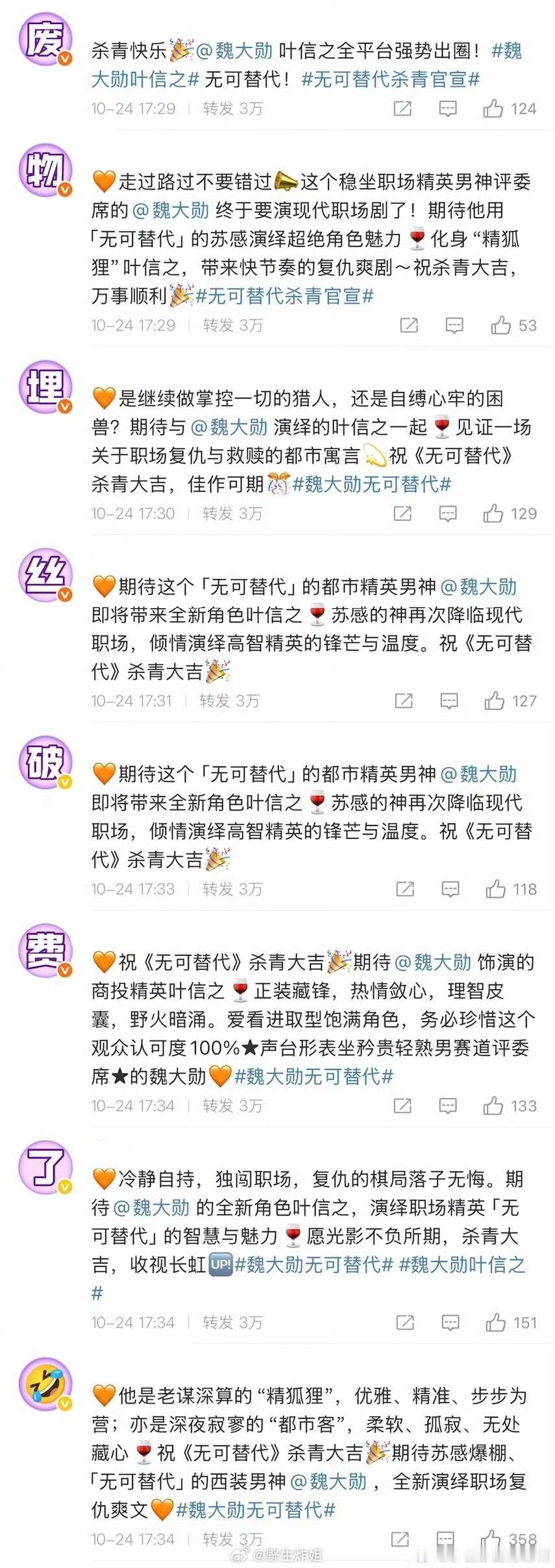 魏大勋粉丝在《无可替代》官博排字 这是咋啦