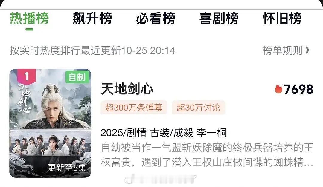 《天地剑心》7698,已破爱奇艺首播热度历史第一,成毅号召力还是很可以的吧?[馋嘴]