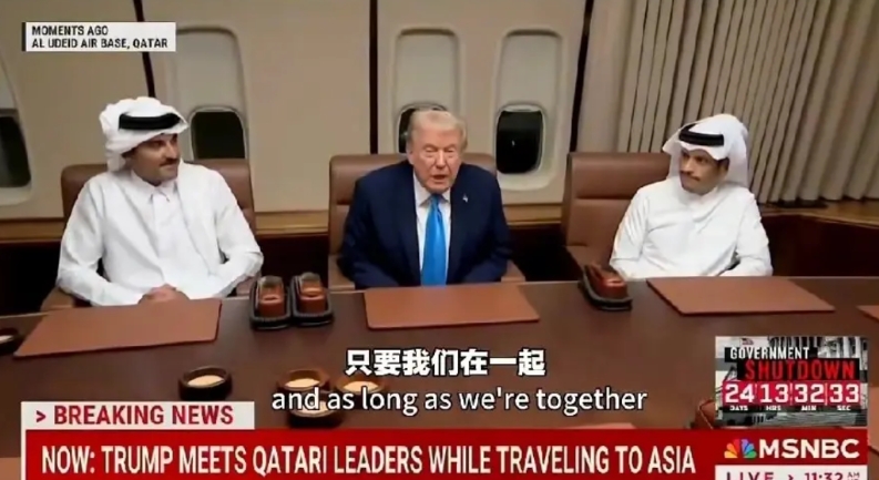 卡塔尔真会“见缝插针”,利用美国总统特朗普专机“空军一号”在卡塔尔落地加油的短暂时间,卡塔尔的埃米尔和首相一起登上专机拜访,然后就是一通夸,当然是互夸模式,可能是用词过于夸张,比如“伟大的盟友,伟大的人”等等,以至于说到后来三人竟一起笑了!