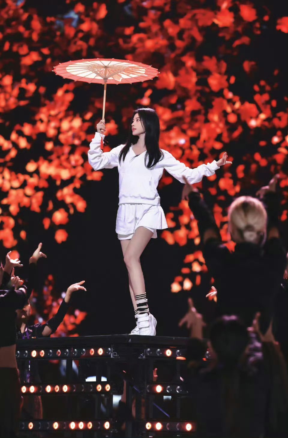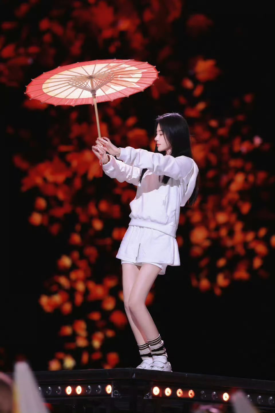 鞠婧祎王者荣耀共创之夜十周年活动彩排这拿伞造型好美,美美的期待今晚直播舞台