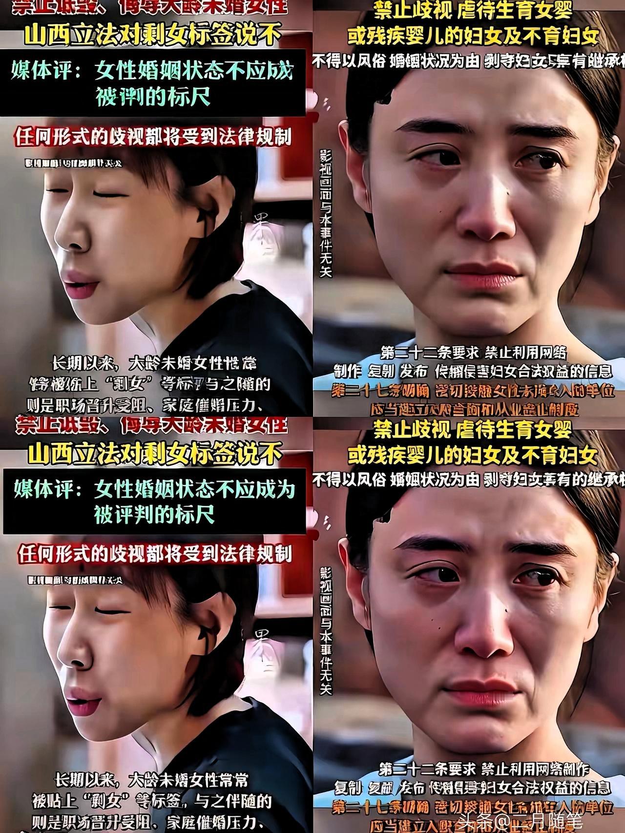山西禁“剩女”词我举双手赞成, 但凭啥双标?“普信男”“穷DS”“凤凰男”骂男性的标签就不算诋毁? 天天喊着反性别对立,转头就把恶意标签往男性身上贴,脱口秀拿“妈宝男”开涮、电视剧把“凤凰男”写得一无是处,怎么没人说这是歧视? 立法护着大龄未婚女性没问题,可大龄未婚男性被贴标签戳心窝,就活该忍? “easy girl”这种带着崇洋偏见的词更离谱,明摆着恶意诋毁,凭啥能逍遥?反歧视就得一视同仁,不是只护着一头! 你们觉得这些恶意性别标签,该一起禁了吗?说说你的想法大龄剩女