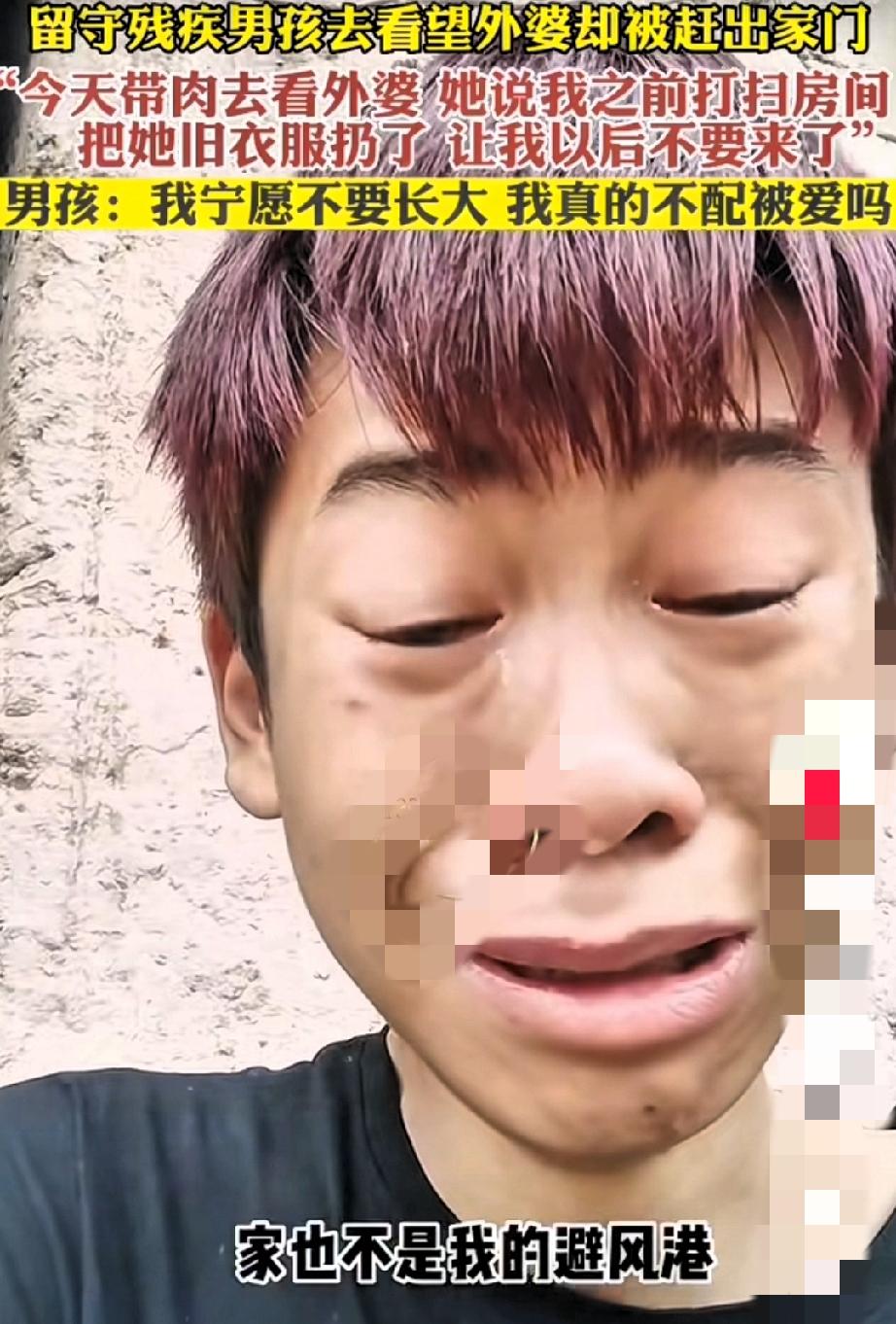 真的越看越心塞,留守又残疾的孩子,攒着心意带肉去看外婆,换回来的却是“以后别来”的驱赶,最后只能红着眼问“我不配被爱吗”。 别总说亲情是靠山,有些时候,亲人反而最容易忽略孩子的真心。这孩子明明在主动付出,帮着打扫房间、想着孝敬长辈,可他的好没被看见,一点误会倒成了被推开的理由。外婆或许疼衣服,但再金贵的物件,也不该比孩子的满心热乎更重要。 最让人难受的不是被赶,是孩子心里那句自我否定。他本就比普通孩子更缺陪伴,亲情该是接住他的那双手,不是再扎他一下的刺。真正的亲人哪会这样?看得见对方的难,珍惜彼此的心意,才是亲情该有的样子。 别让一时的较真凉了最该疼的人,这孩子从来都配被好好爱着。要是你遇上这种事,会怎么帮这孩子解开心里的结?无父母爱的孩子 穷人家的男孩 九岁残疾女孩 穷苦男孩 脑瘫小男孩 轮椅男孩儿 十四岁残疾女孩