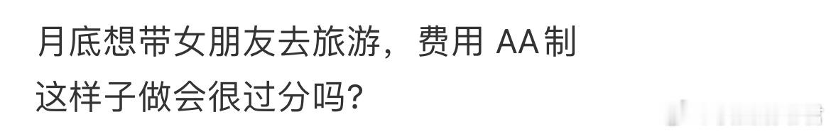 月底想带女朋友去旅游,费用AA制这样子做会很过分吗?